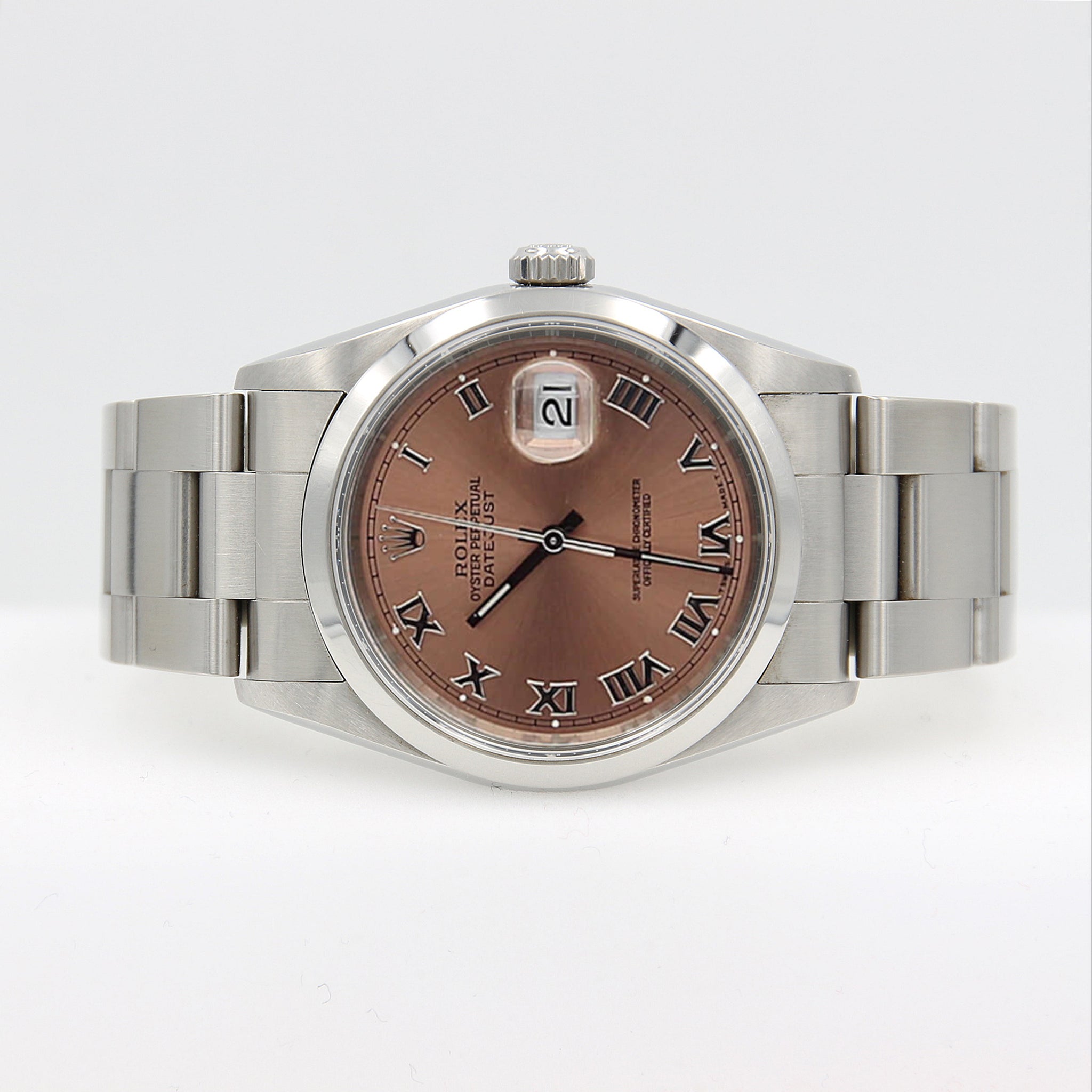 Rolex Datejust 36 Ref. 16200 - Lachs Römisch -Zifferblatt Auster Armband - Voller Set