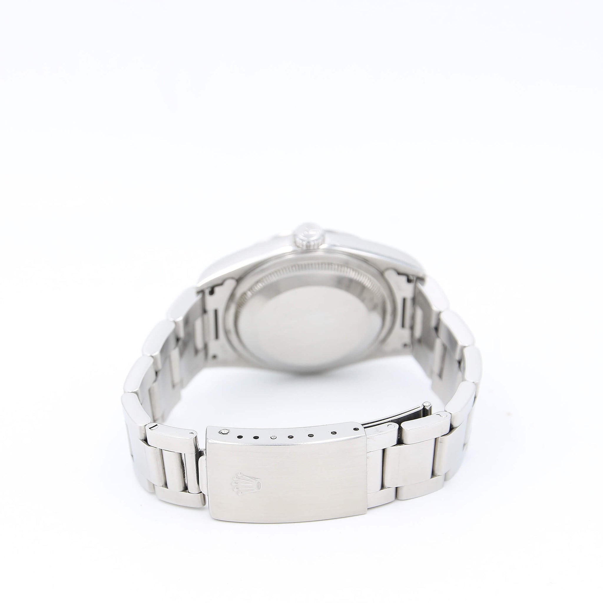 Dieses authentische Rolex-Vintage-Modell präsentiert eine lachsfarbenes Zifferblatt mit romanischen Zahlen und gewölbte Stahllünette.