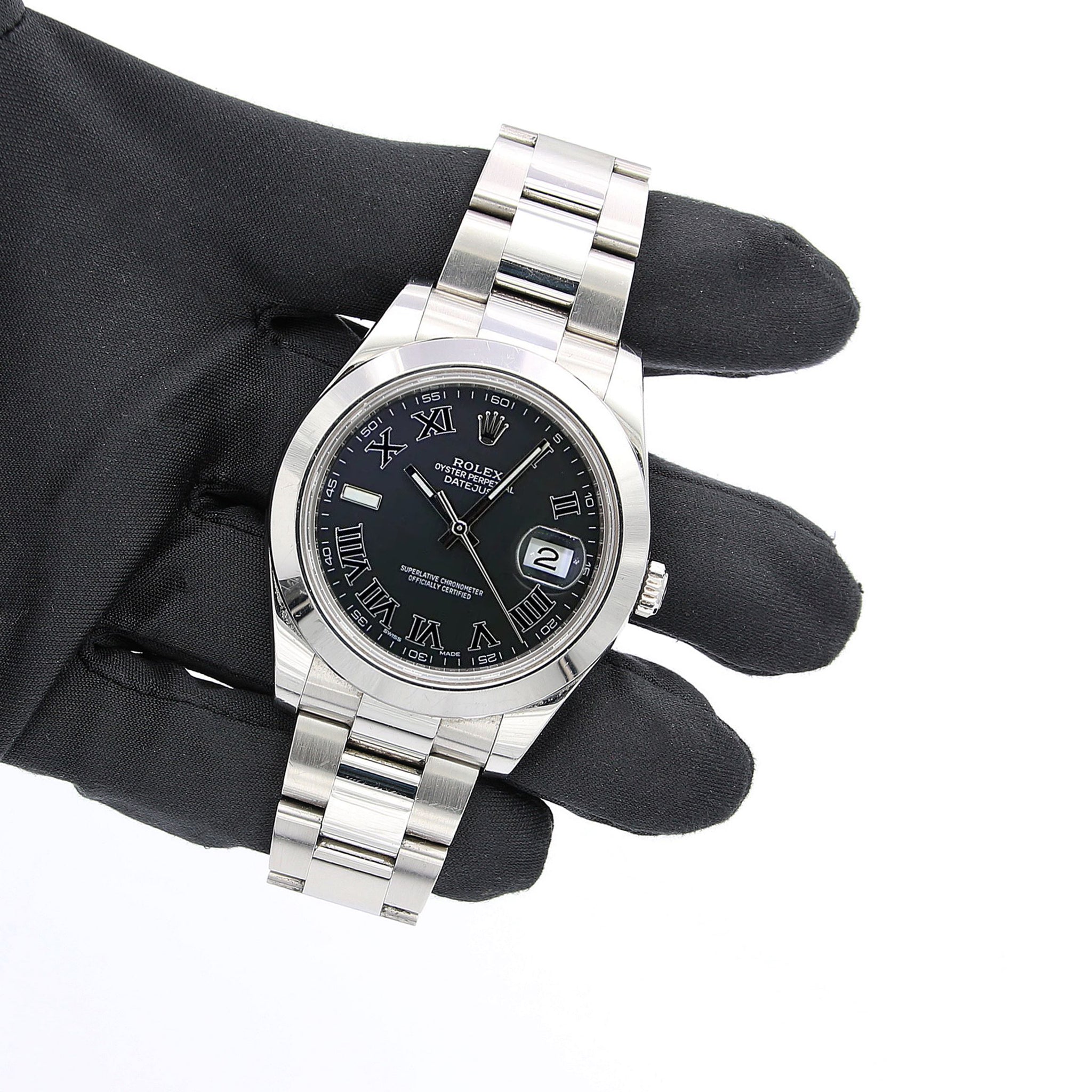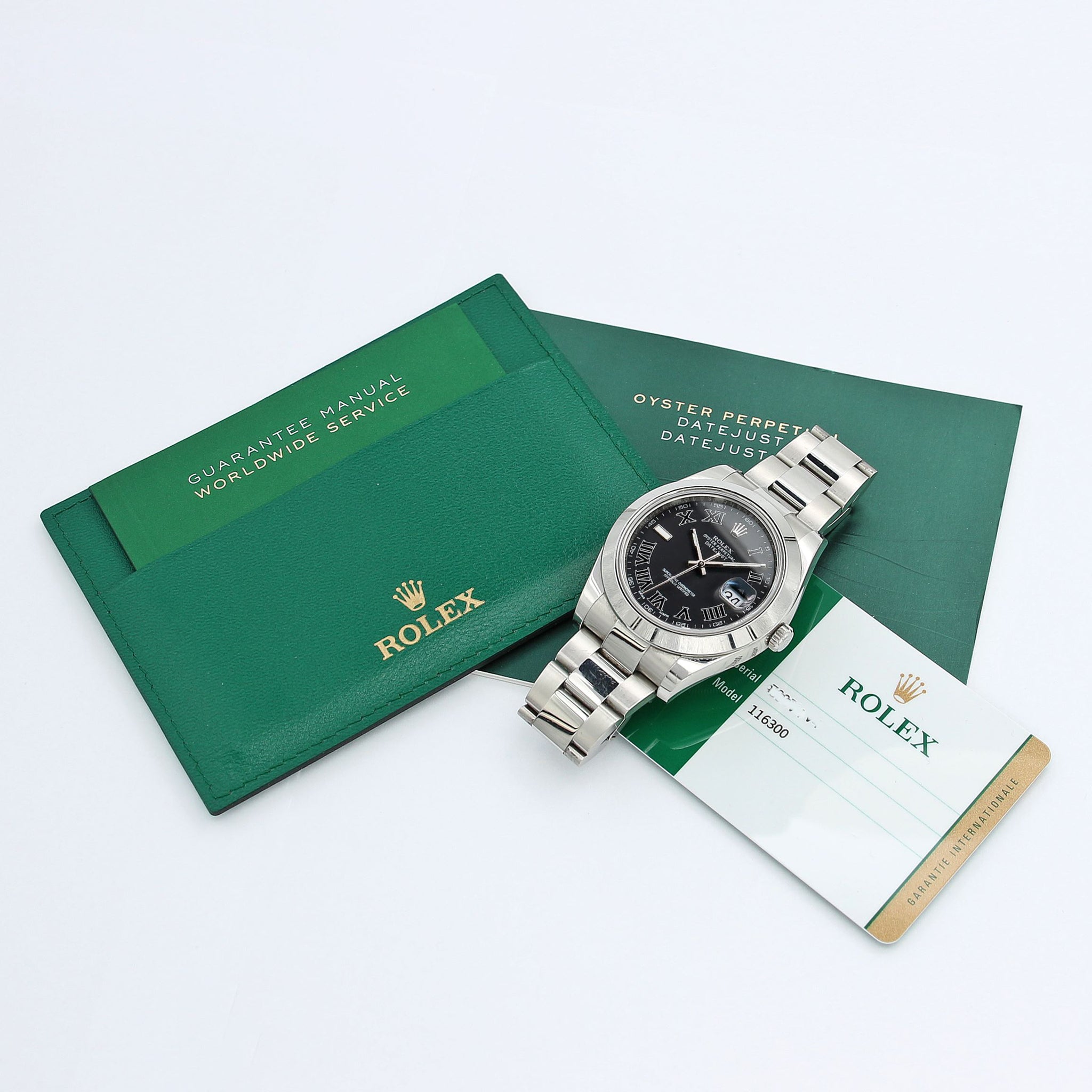 Rolex Datejust 41 Ref. 116300 schwarzes römisches Zifferblatt - Austernarmband - Voller Set