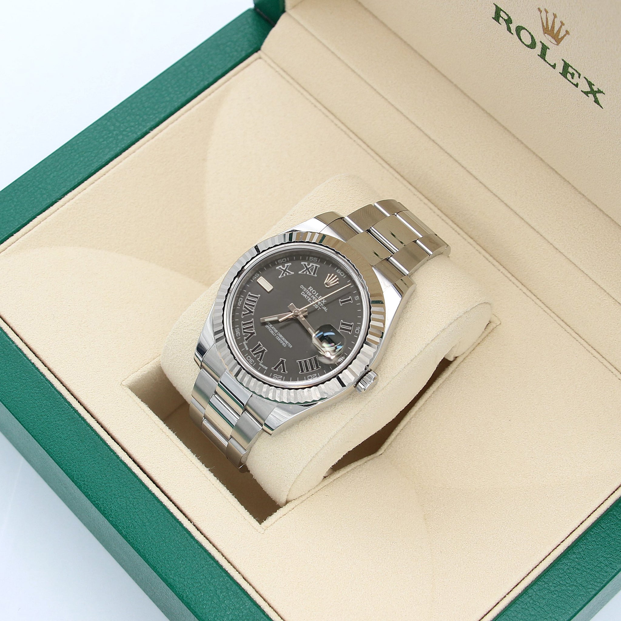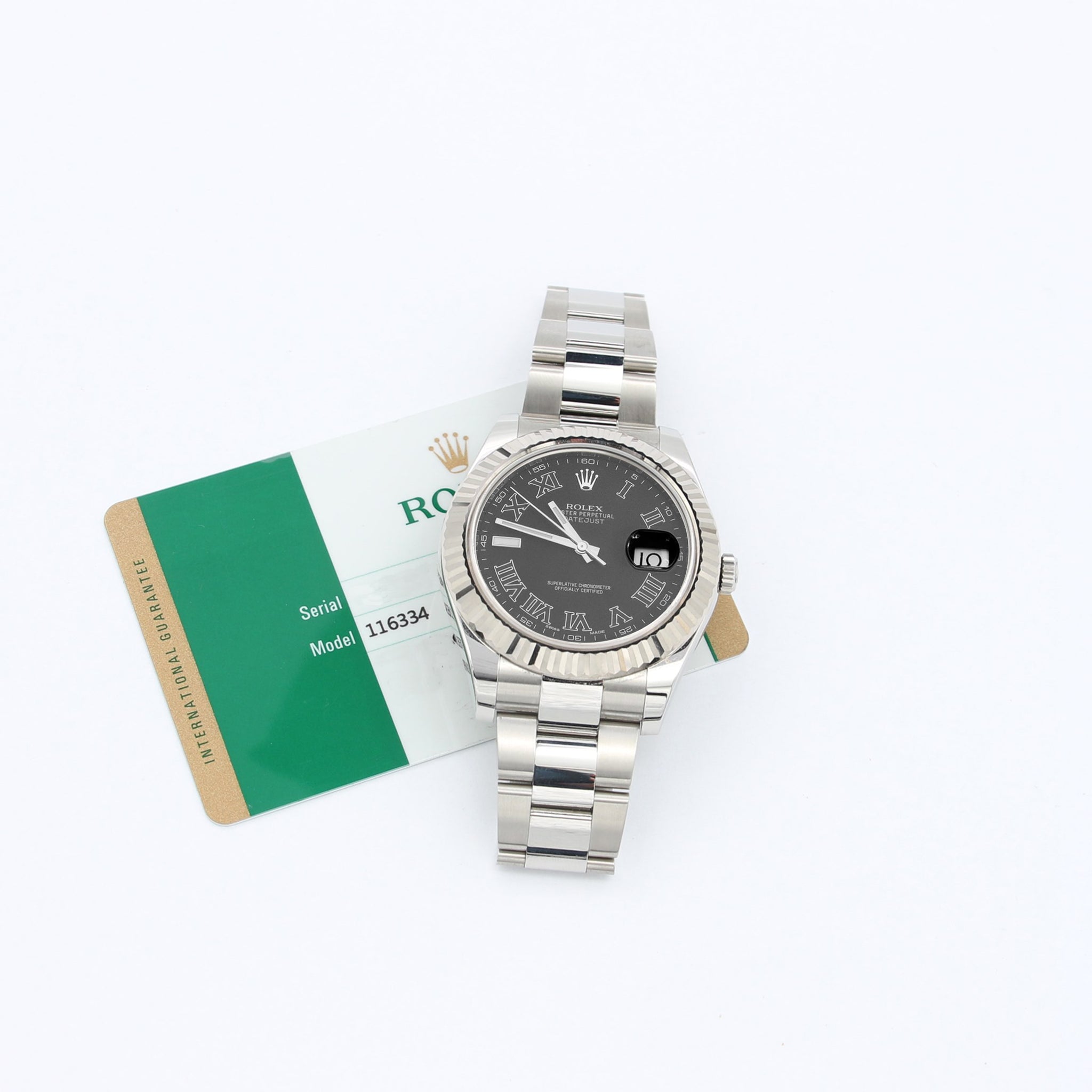 Rolex Datejust II Ref. 116334 graues Römisch -Zifferblatt -Austernarmband - Vollständiger Satz