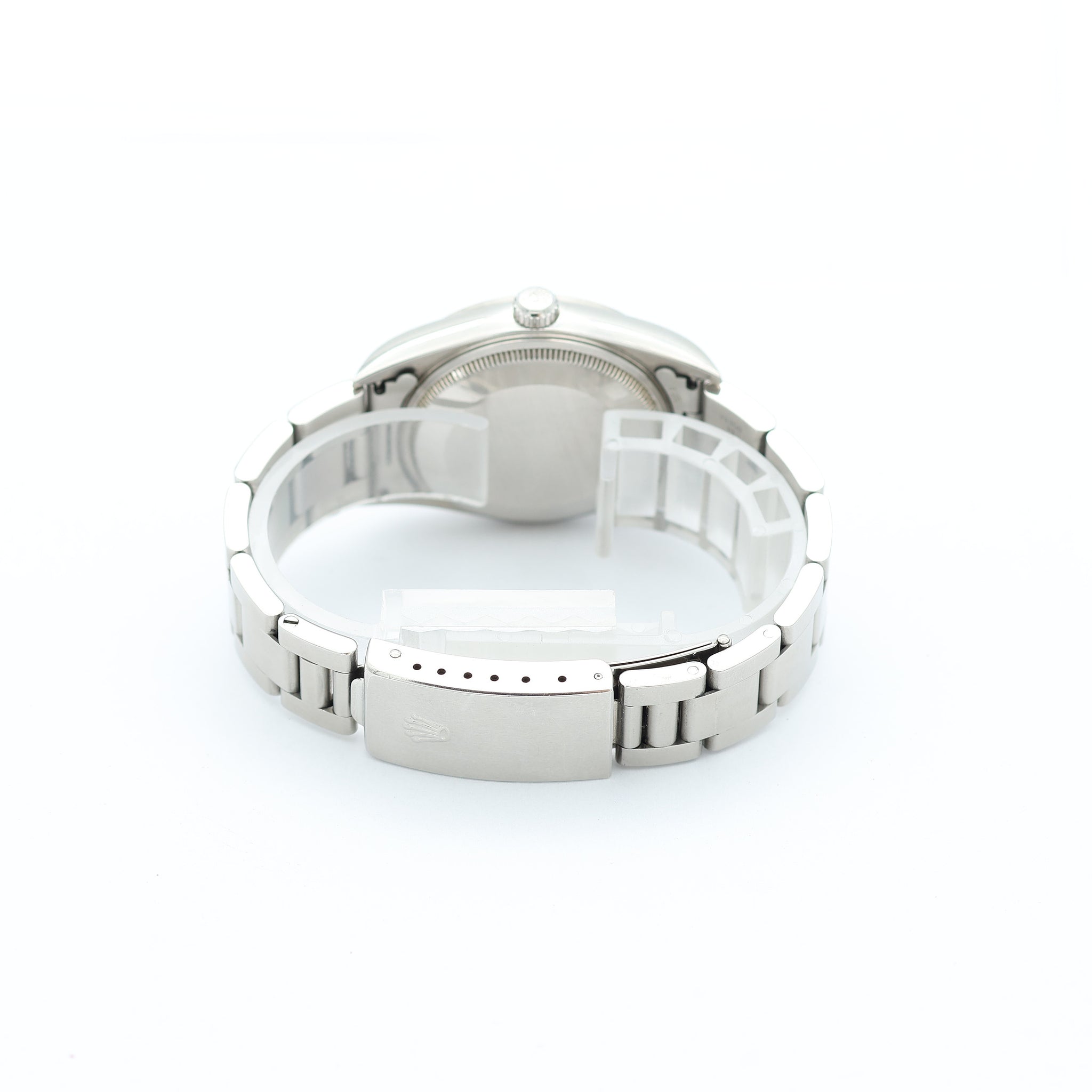 It can be considered a modern unisex Rolex reference with its 34mm Oyster case with a silver dial.