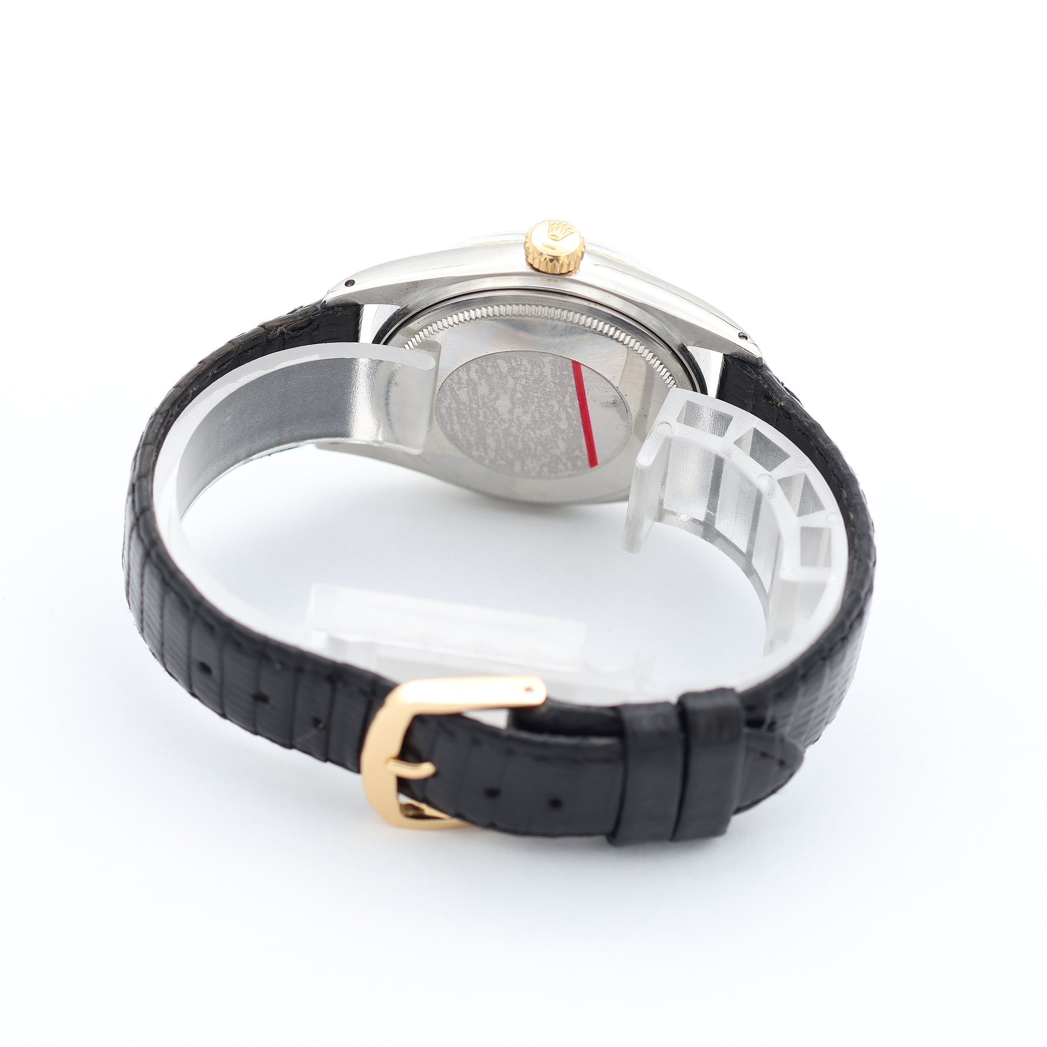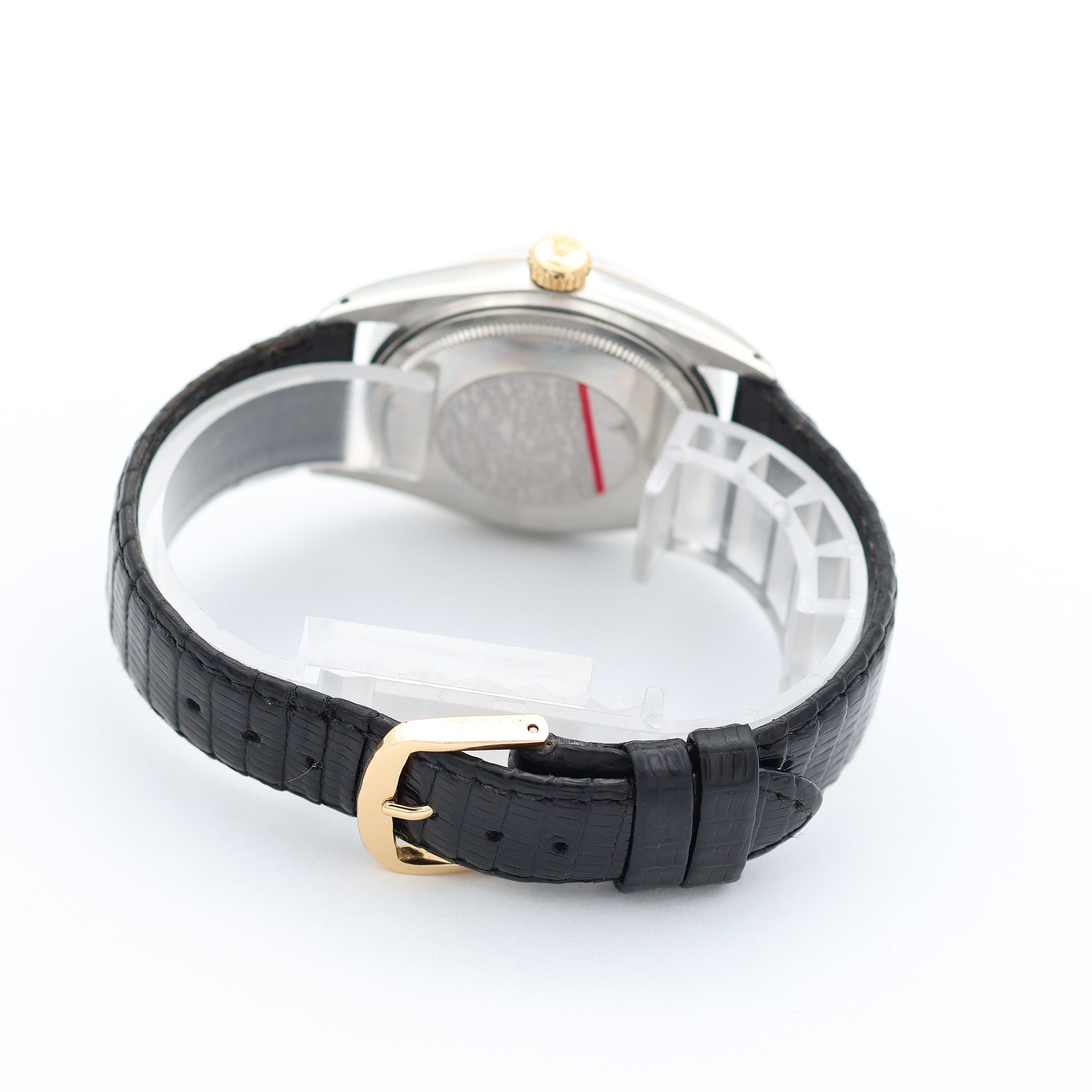 For sale at Debonar Watches: pre-owned Rolex Datejust ref. 1601 in steel and yellow gold, with an elegant creamy dial and a generic leather strap, full set.