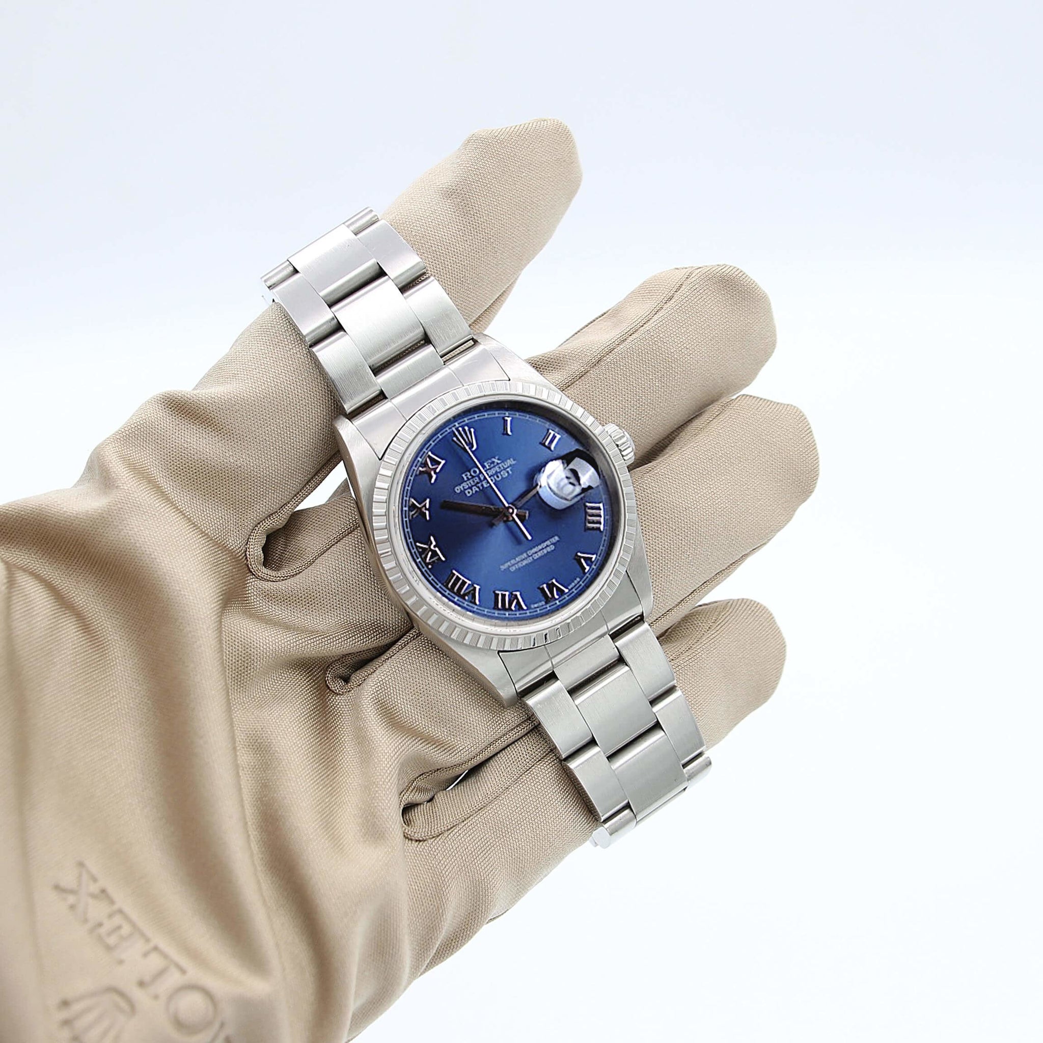 Rolex Datejust ref. 16220 Blue Roman Dial Oyster Bracelet