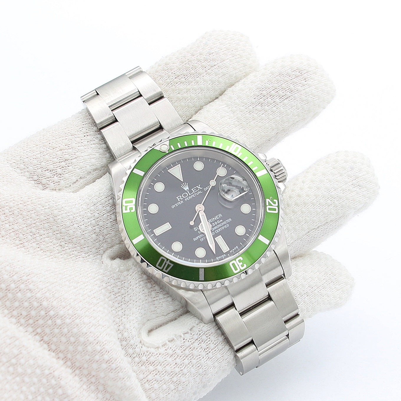 There are 2 types of Kermit Submariner, with slightly dissimilar designs: the original Kermit 50th anniversary, and the Kermit “Flat 4” (or "Fat 4") edition - as the one here.