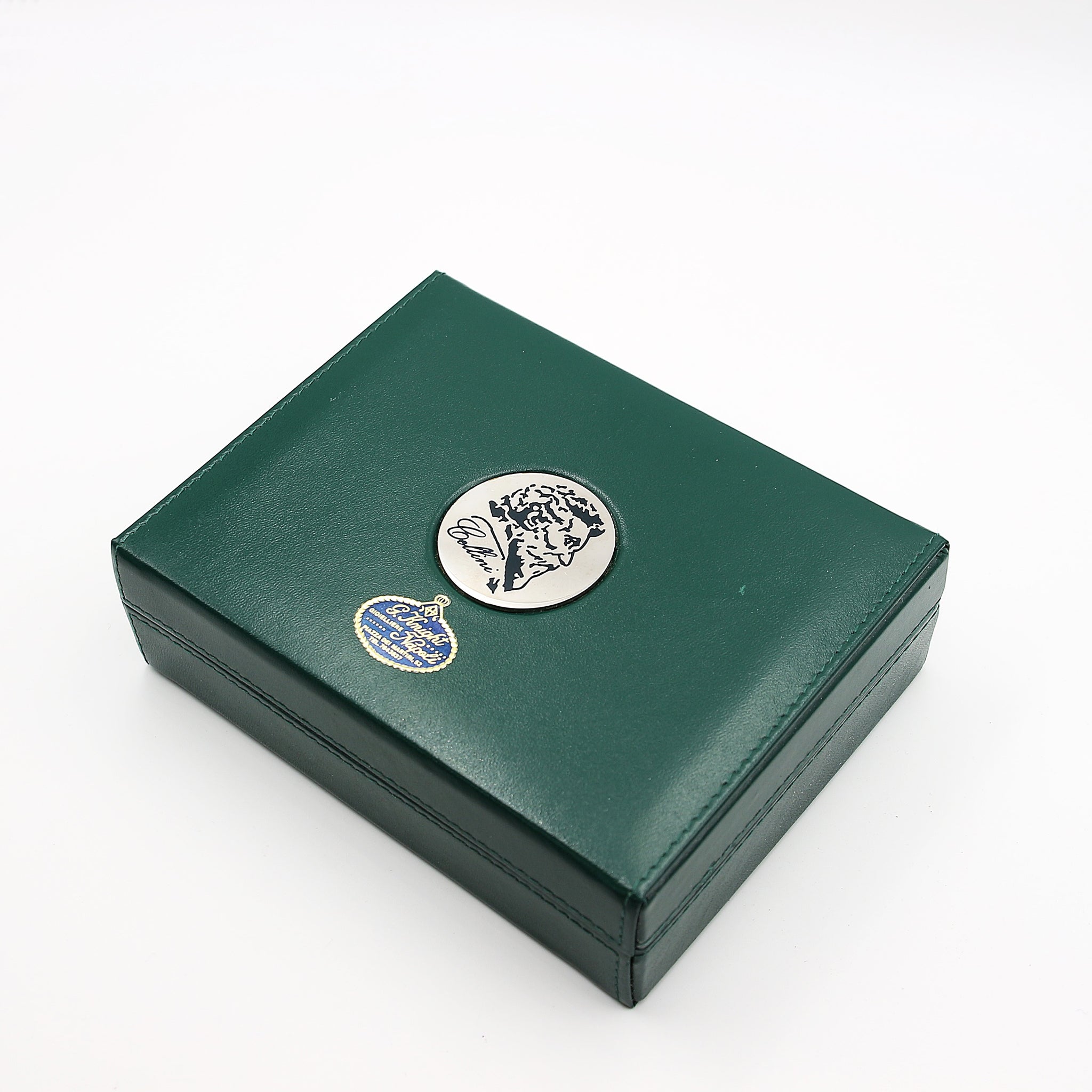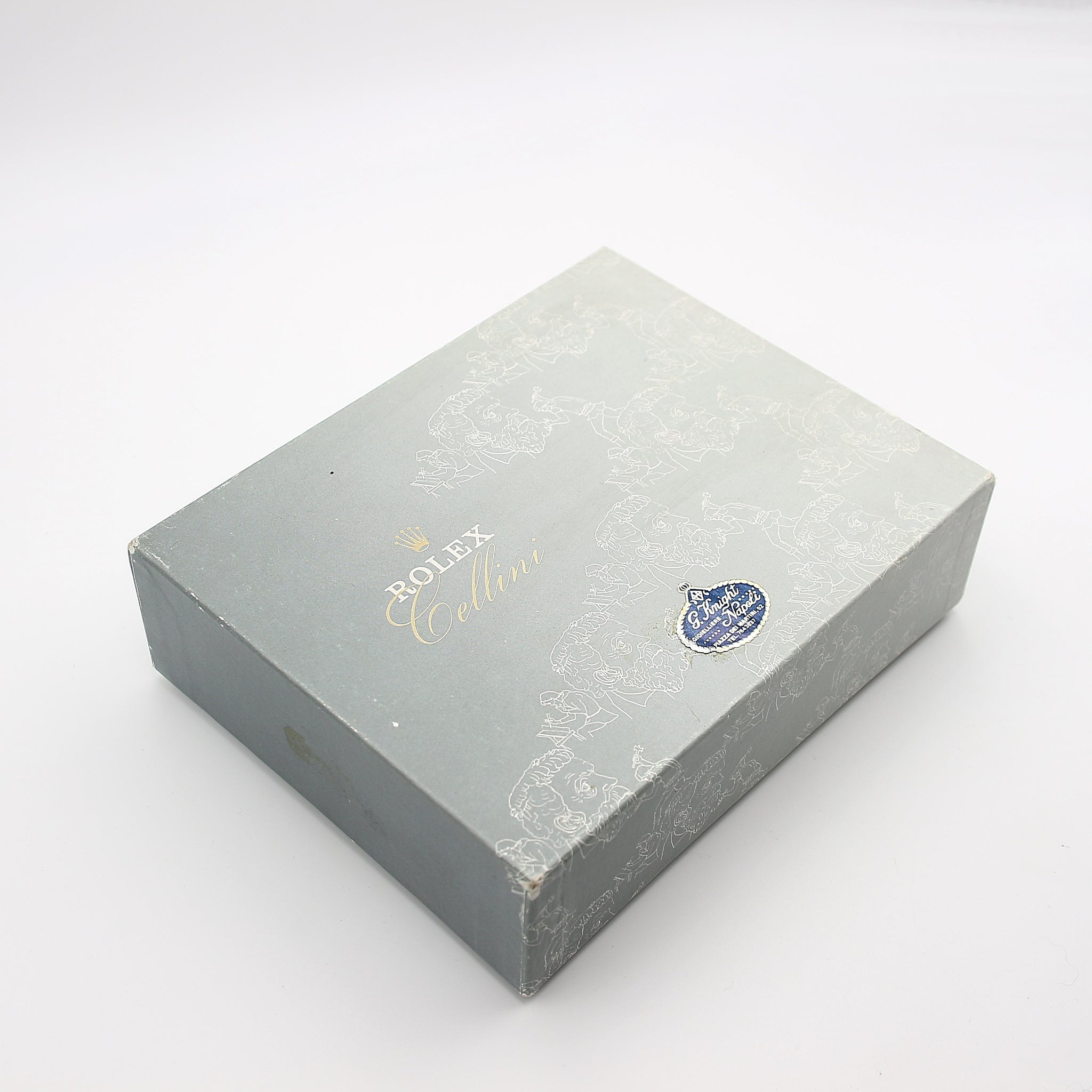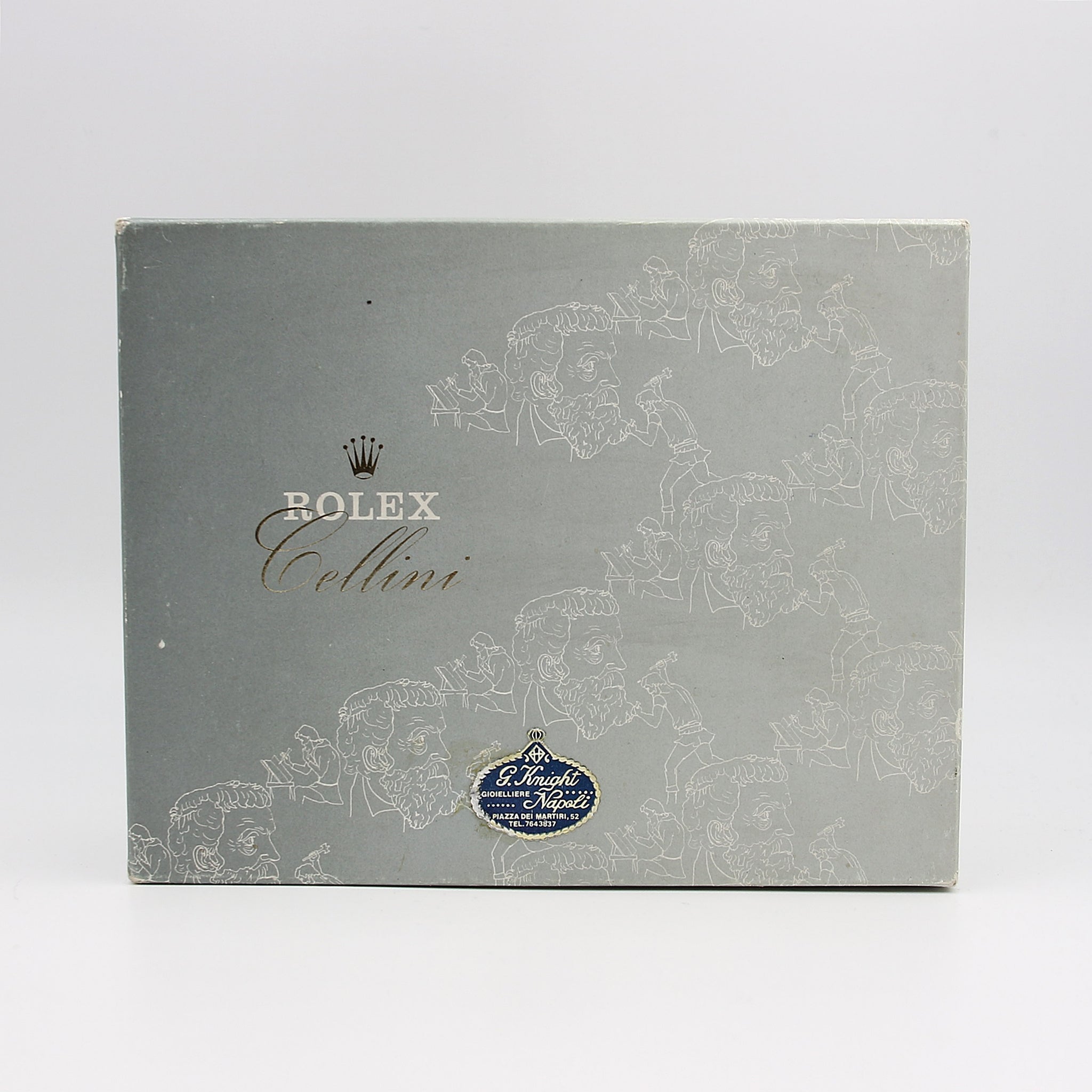 This Rolex box on the outside is in green leather with a detail that portray the Italian Renaissance artist, Benvenuto Cellini (from which the entire collection Cellini takes its name).