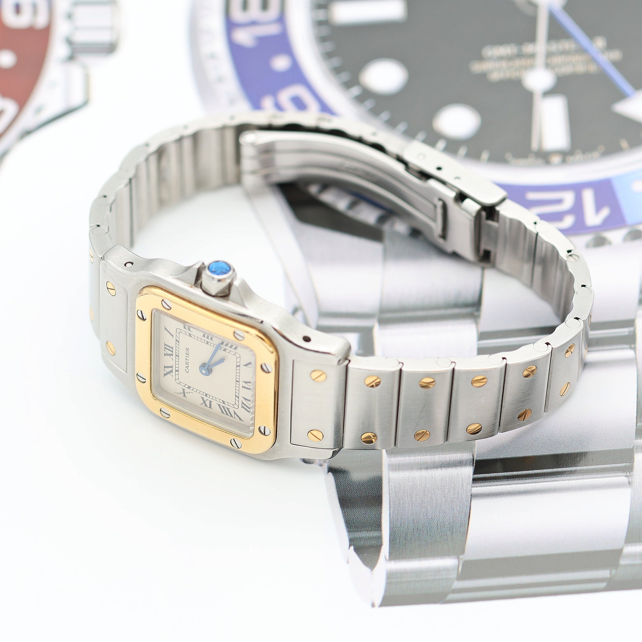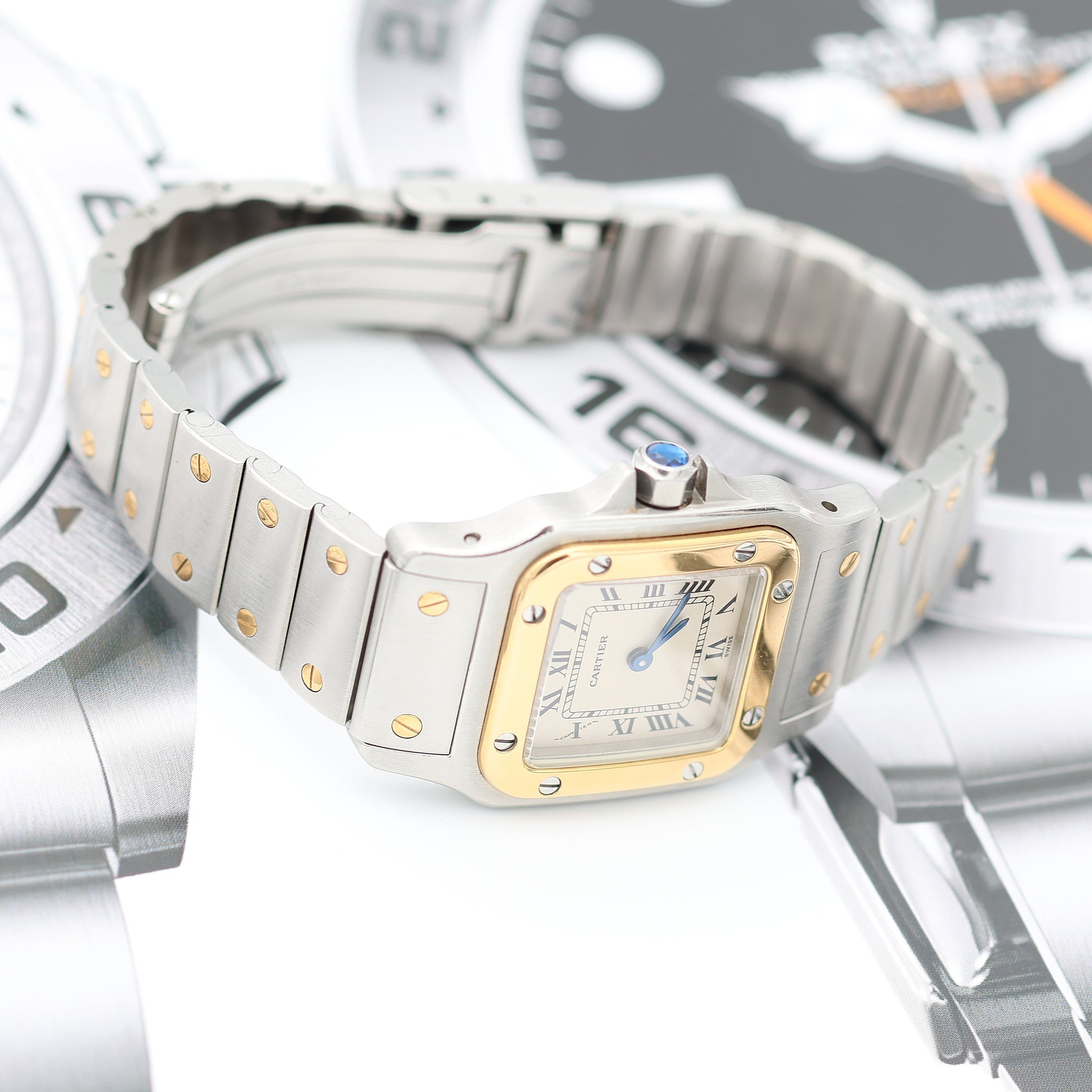 The Santos introduced a revolutionary aesthetic. The Santos, in contrast, had a strong aesthetic, with a square case and visible screws on the bezel. The Santos has remained a staple in Cartier’s collection: it received an overhaul in 1987 and was relaunched as the Santos Galbée.
