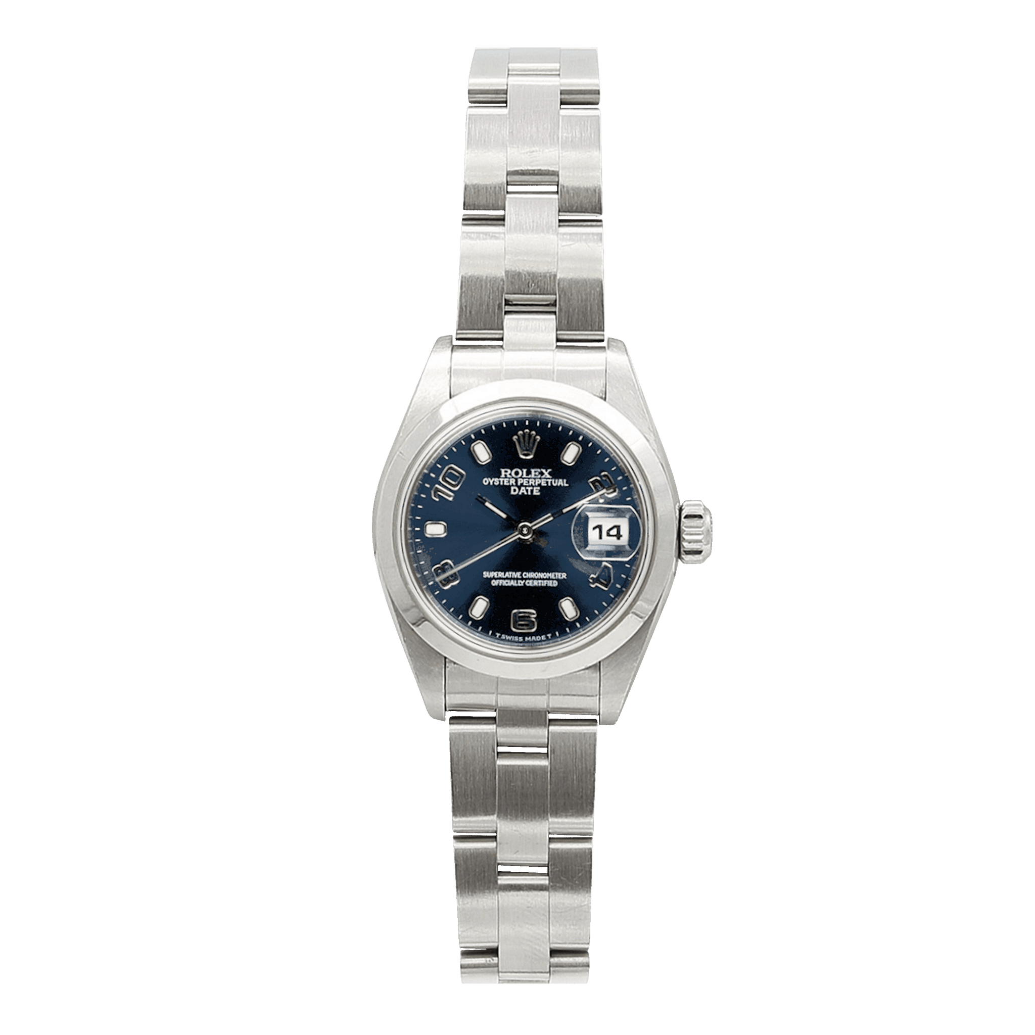 This 69160 is a notable 26mm example of the Oyster Perpetual Date produced through the 1990s and '00s.