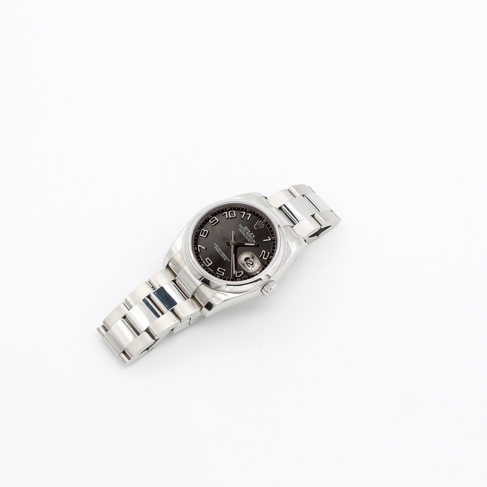 For sale at Debonar Watches: pre-owned Rolex Datejust 116200, in excellent conditions, with a spectacular black dial called "racing concentric", full set.