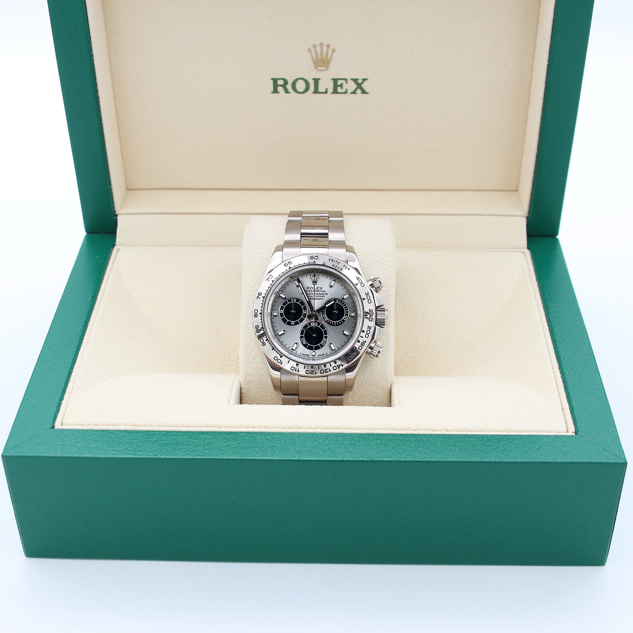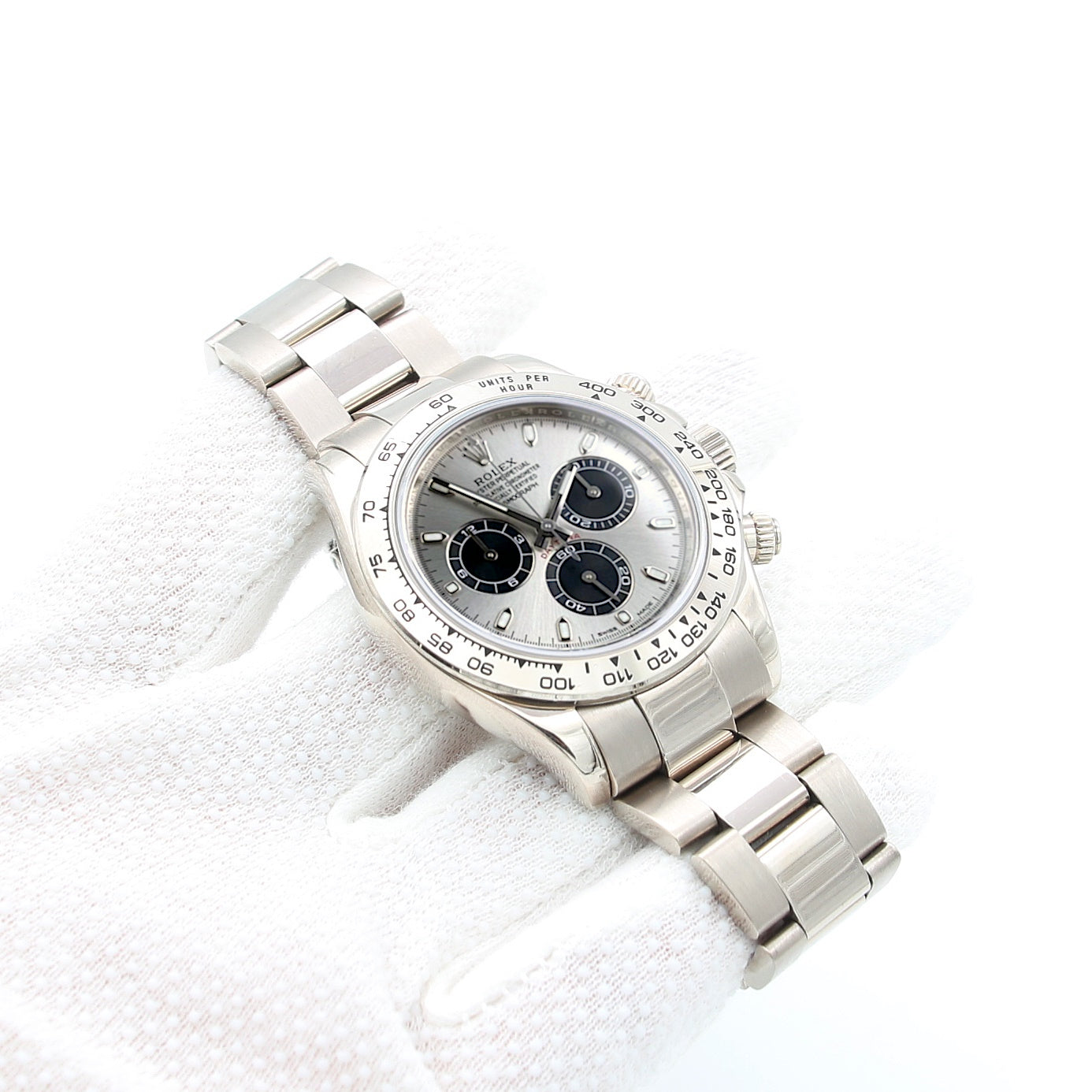 Shortly after the release of the first batch of Daytona watches with in-house movements, Rolex added the full white gold Daytona 116509 to the range in 2004, complete with a white gold Oyster bracelet.