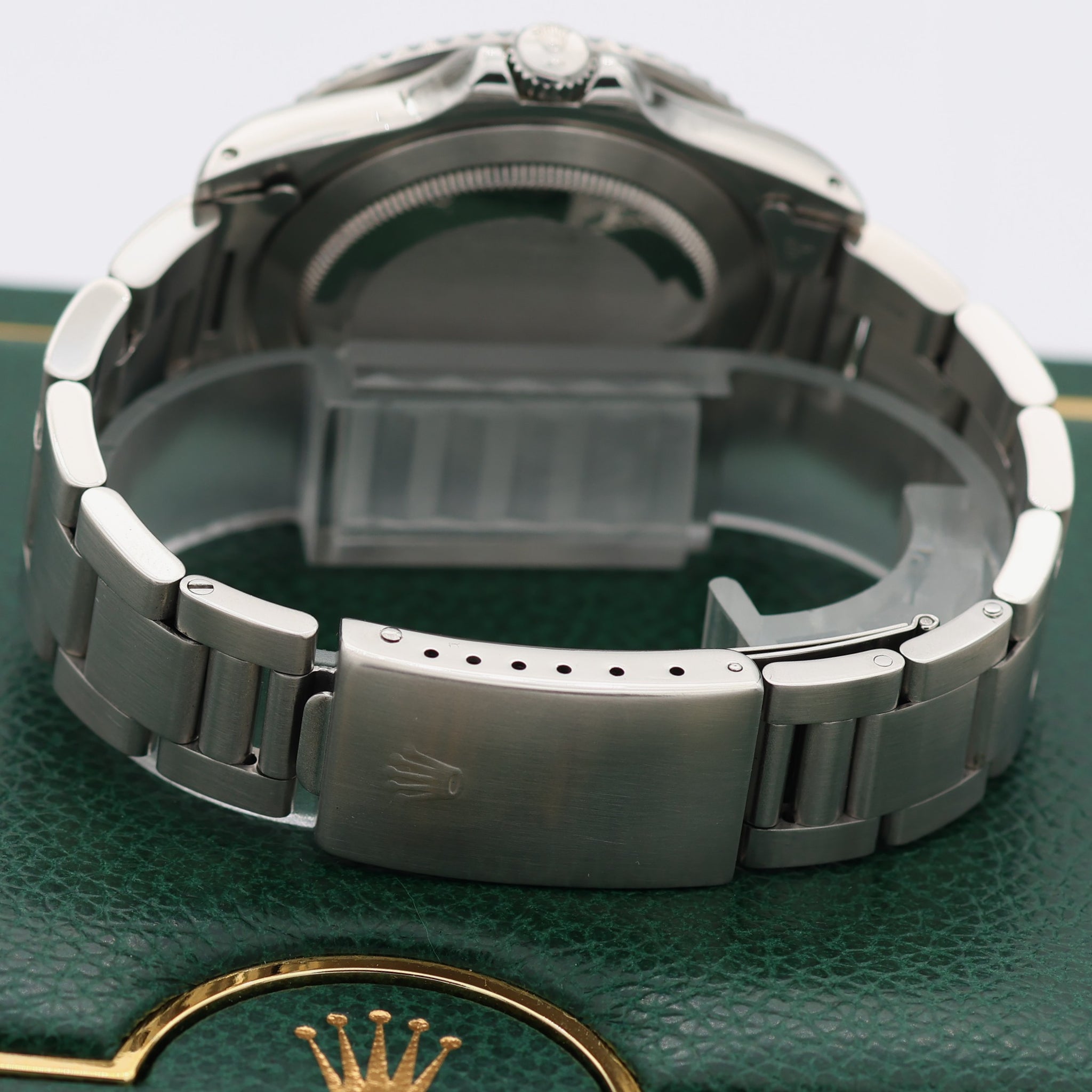 As with most Rolex Professional watches, the GMT-Master ref. 16700 features the familiar dial layout comprised of luminous Mercedes-style hands and a mix of rectangular, circular, and triangular luminous indexes.