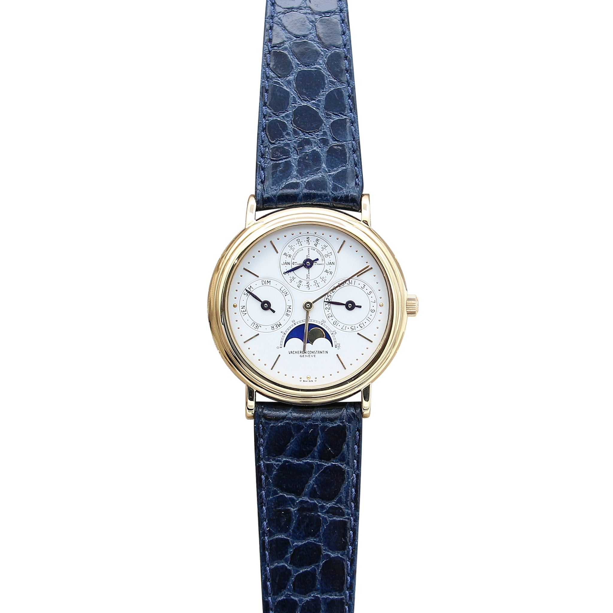 For sale at Debonar Watches: pre-owned Vacheron Constantin Patrimony Perpetual Calendar 43031, in 18k yellow gold, with a generic strap.