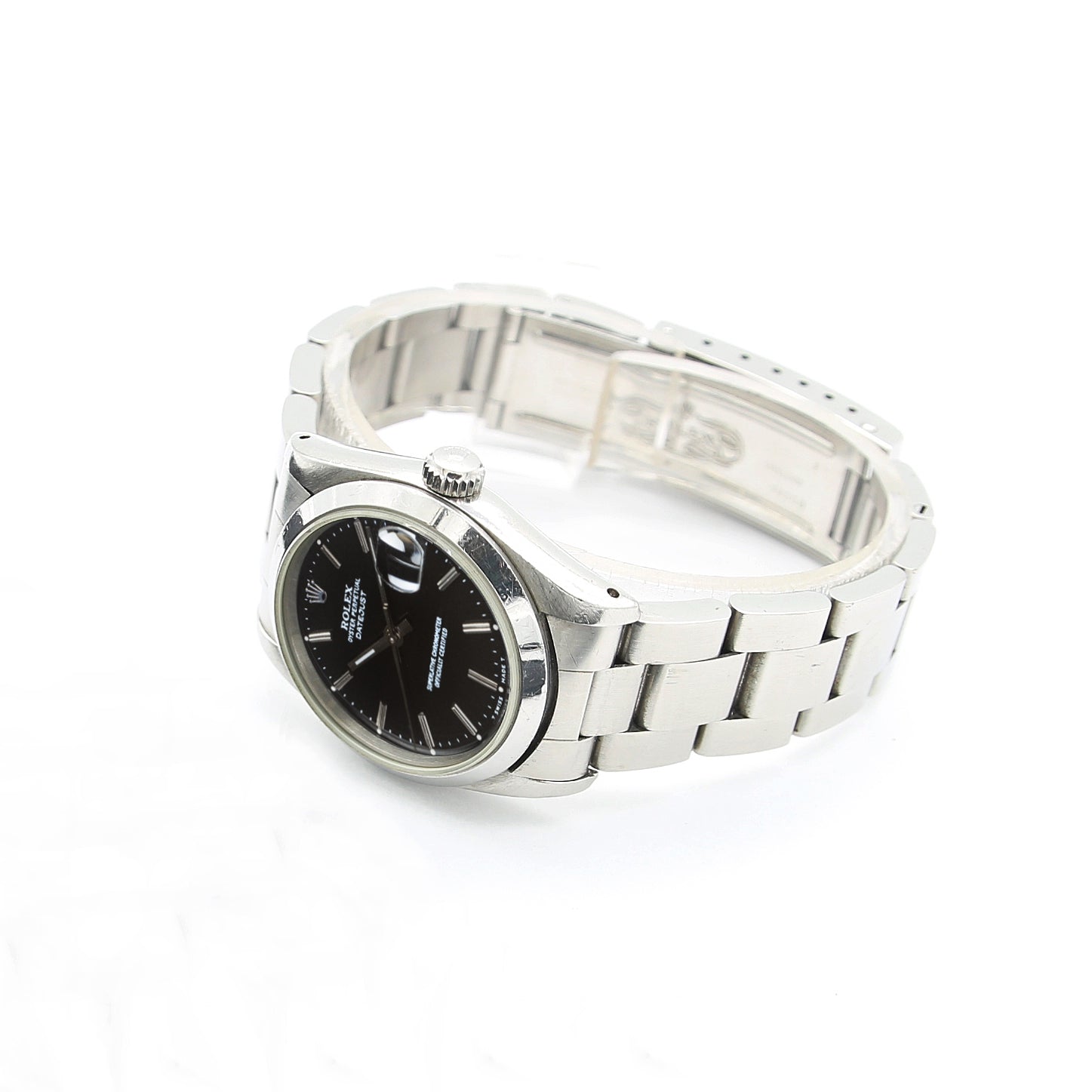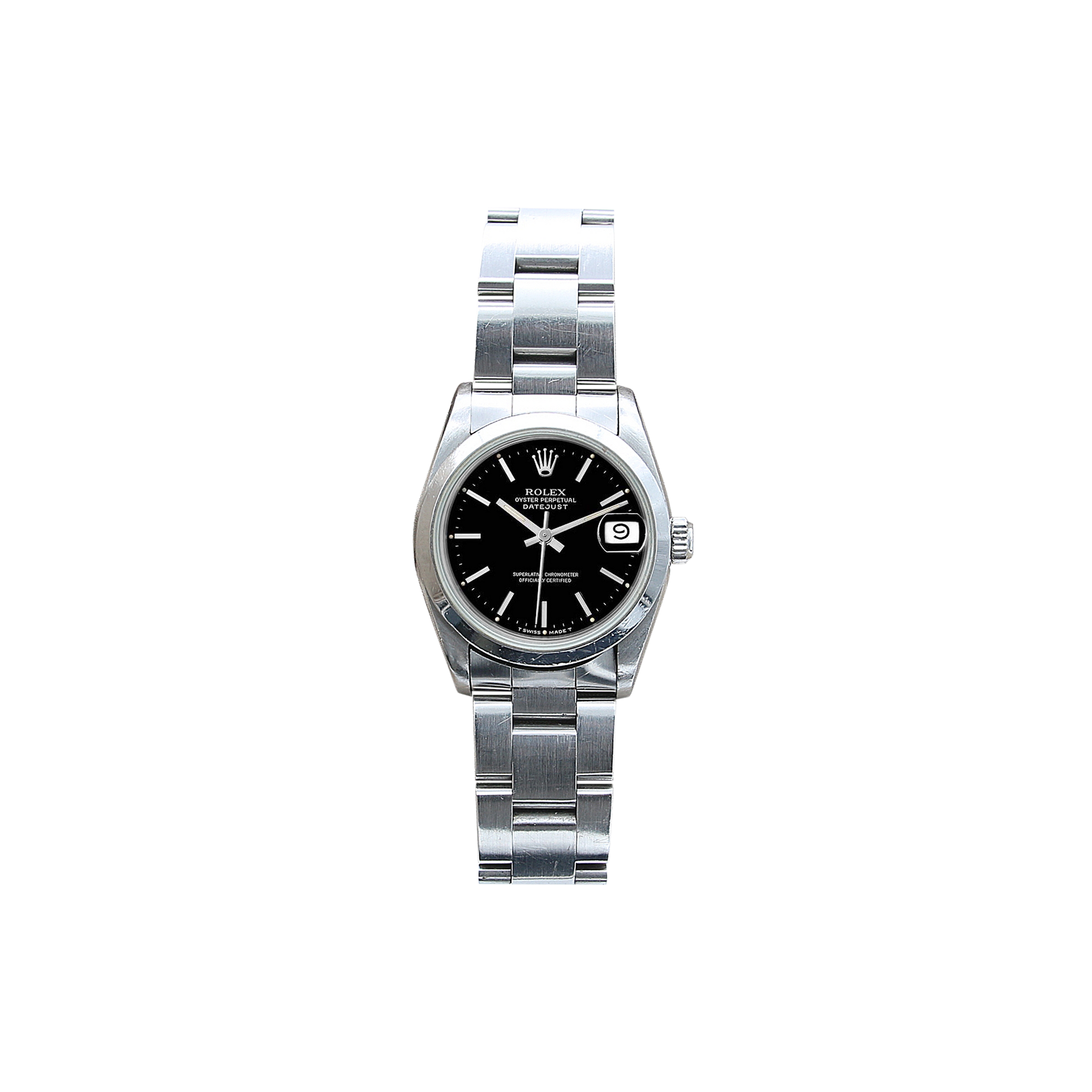 For sale at Debonar Watches: pre-owned Rolex Datejust ref. 68240, with an elegant black dial and a domed steel bezel, full set.