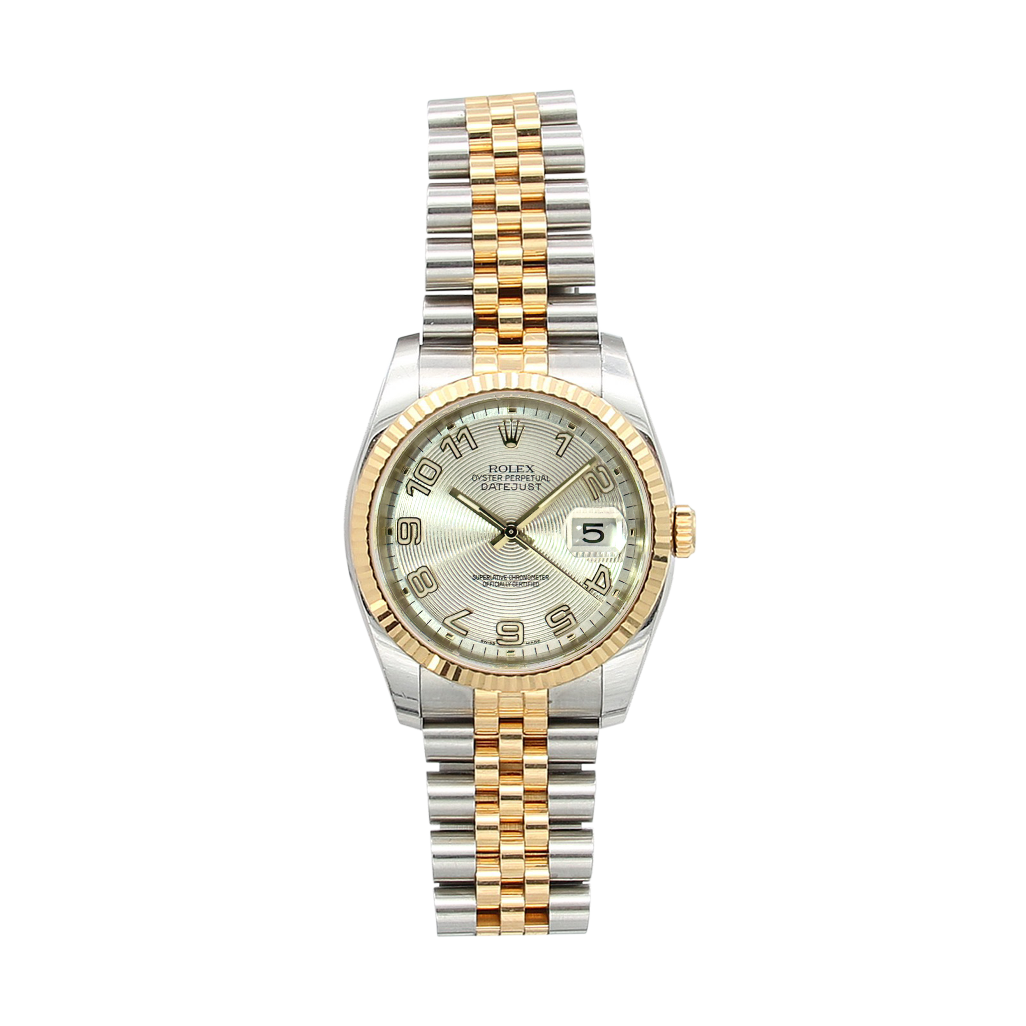 For sale at Debonar Watches: pre-owned Rolex Datejust 116233, in excellent conditions, with a beautiful silver dial with a peculiar pattern, usually called "Racing", full set.