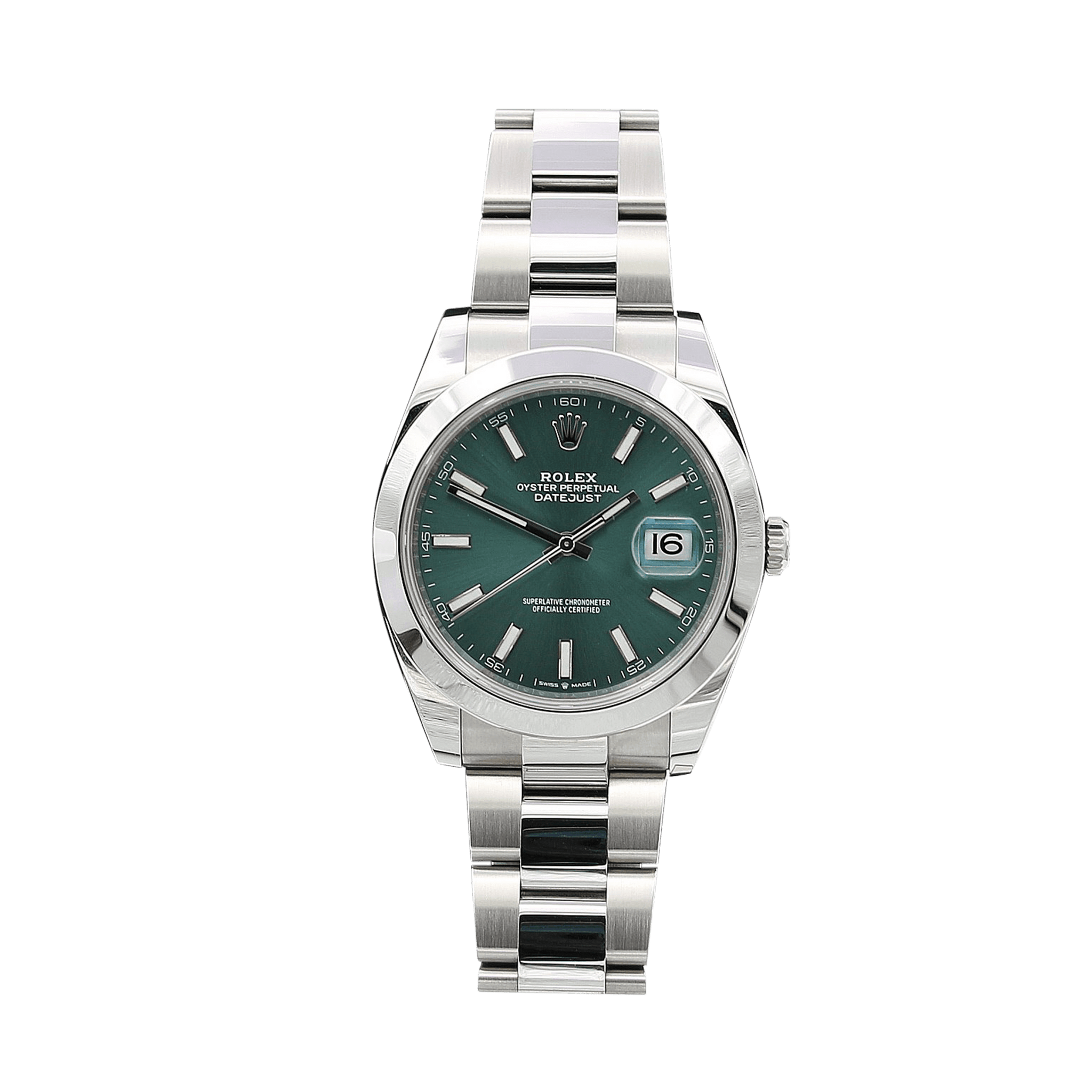 This Oyster Perpetual Datejust 41 features a beautiful deep green dial and Oyster bracelet.