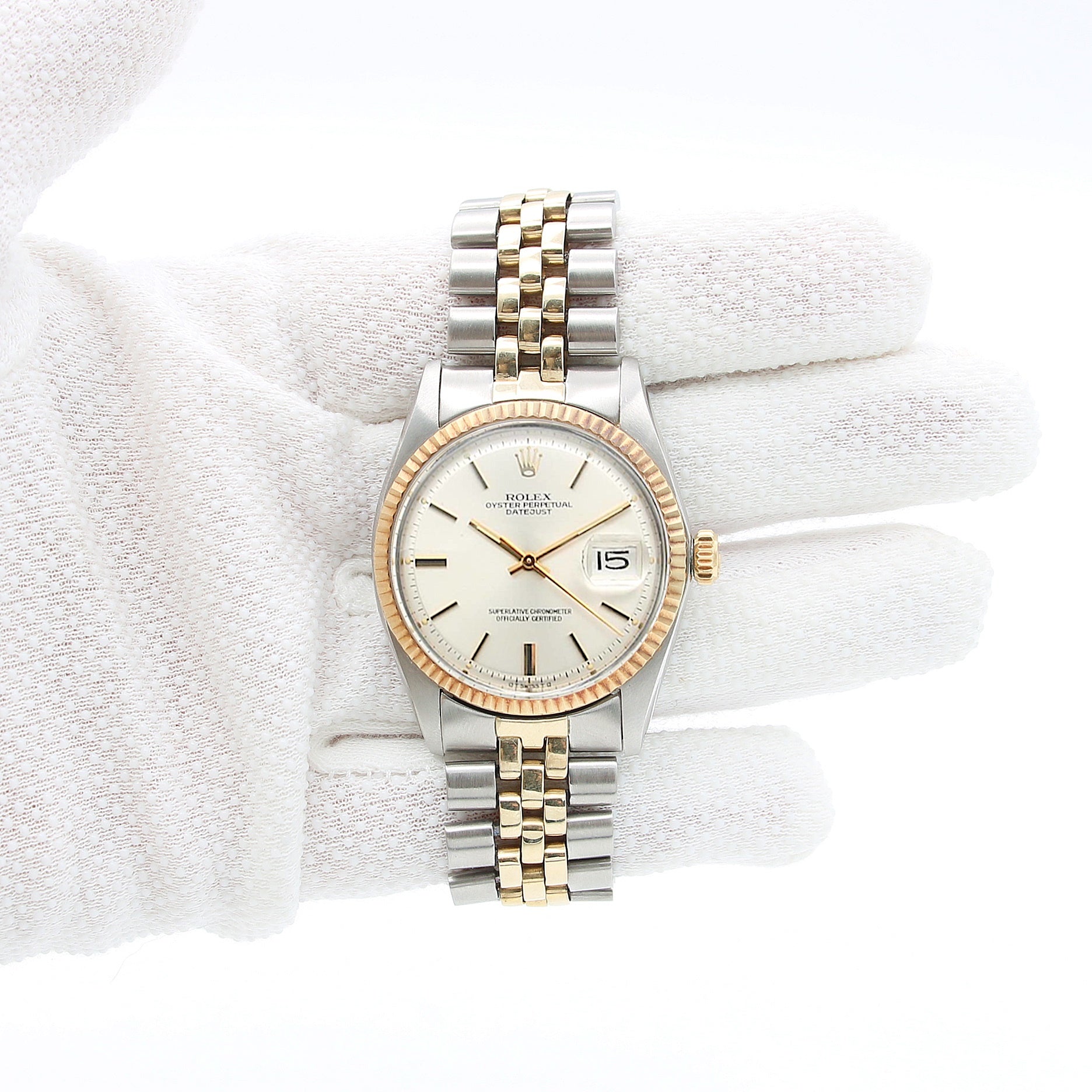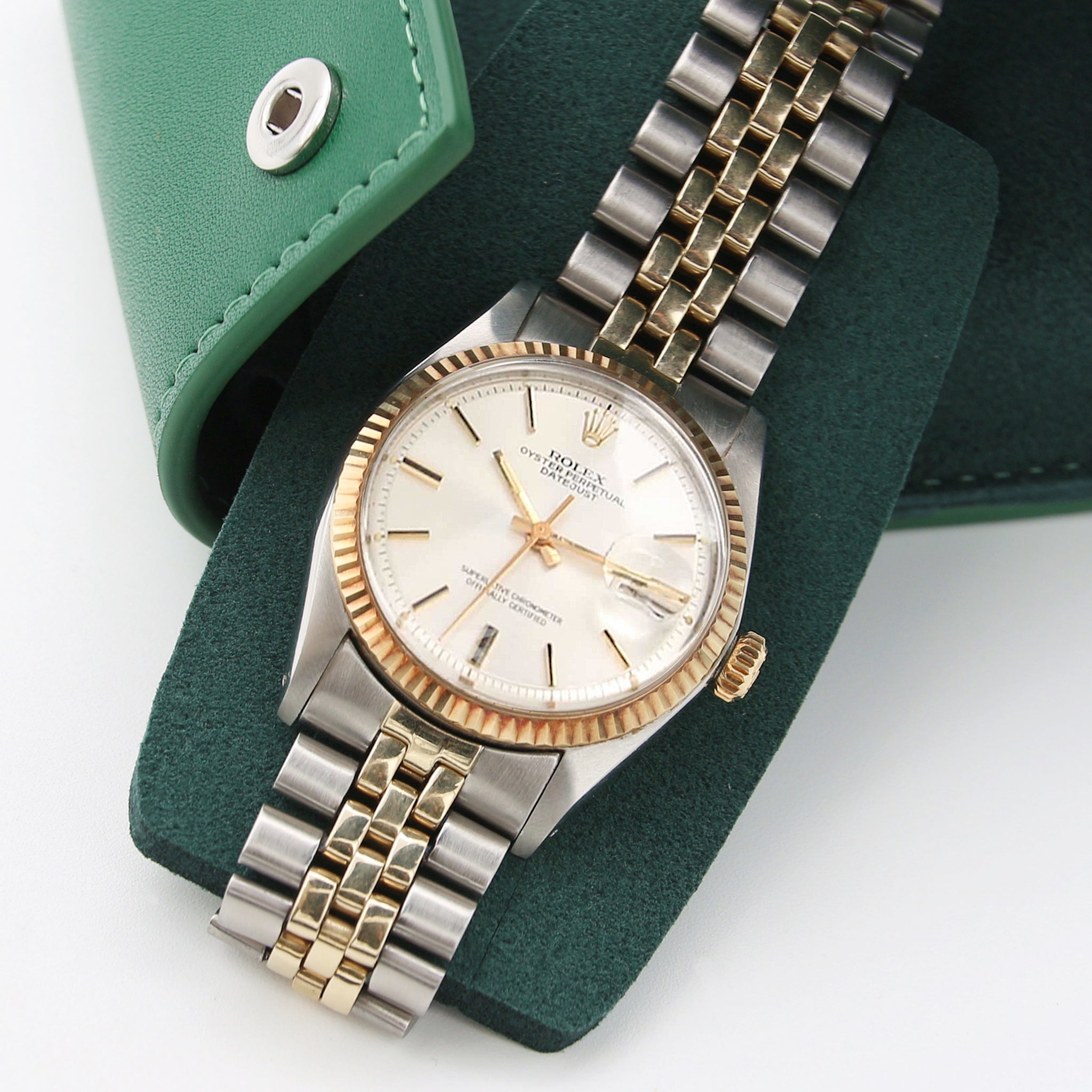 For sale at Debonar Watches: pre-owned Rolex Datejust ref. 1601 in steel and yellow gold, with a superlative silver dial and an Ovolini American bracelet.