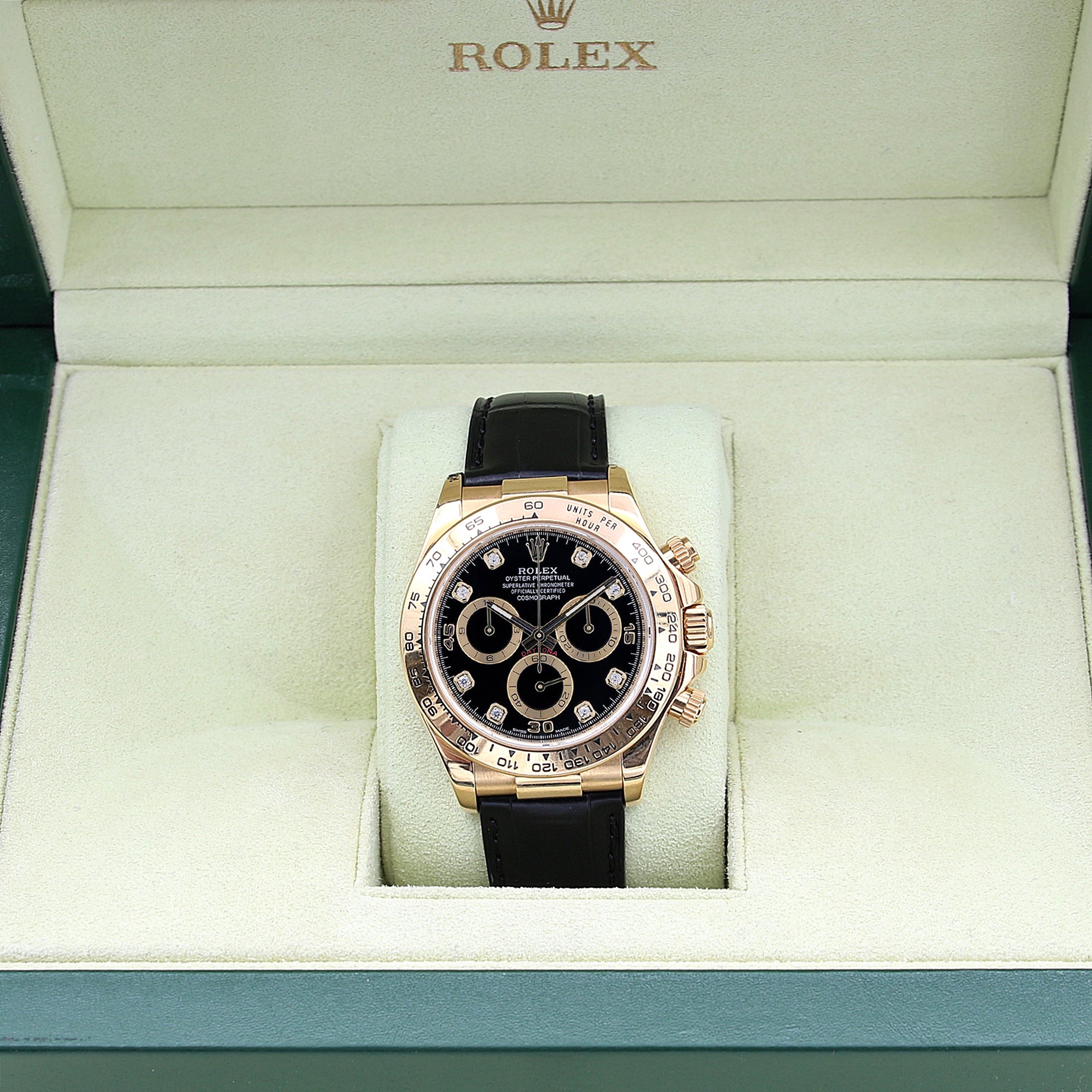 Rolex Daytona ref. 116518 - 18k Yellow Gold and Leather Strap - Black Diamonds dial - Full Set