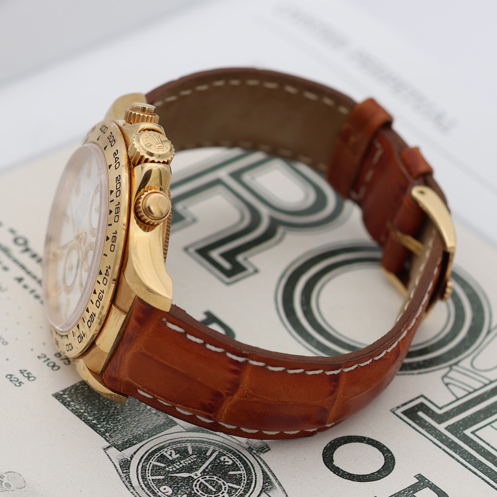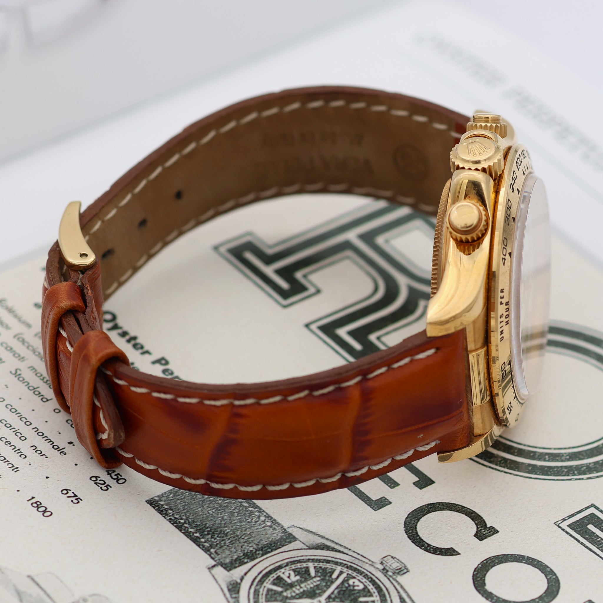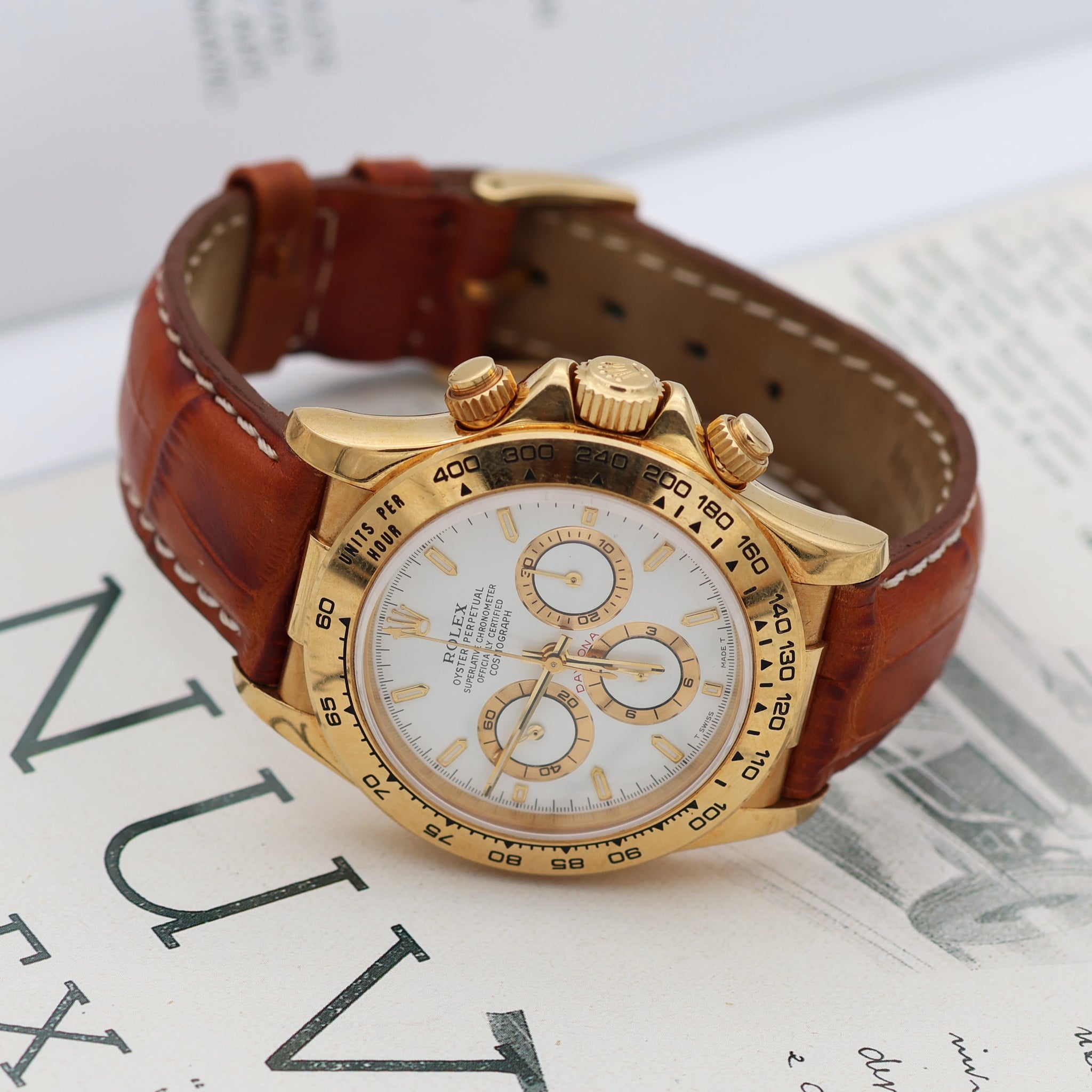 The Rolex Cosmograph ref. 16518 is a particular yellow gold variant of the Daytona chronograph with Zenith power.