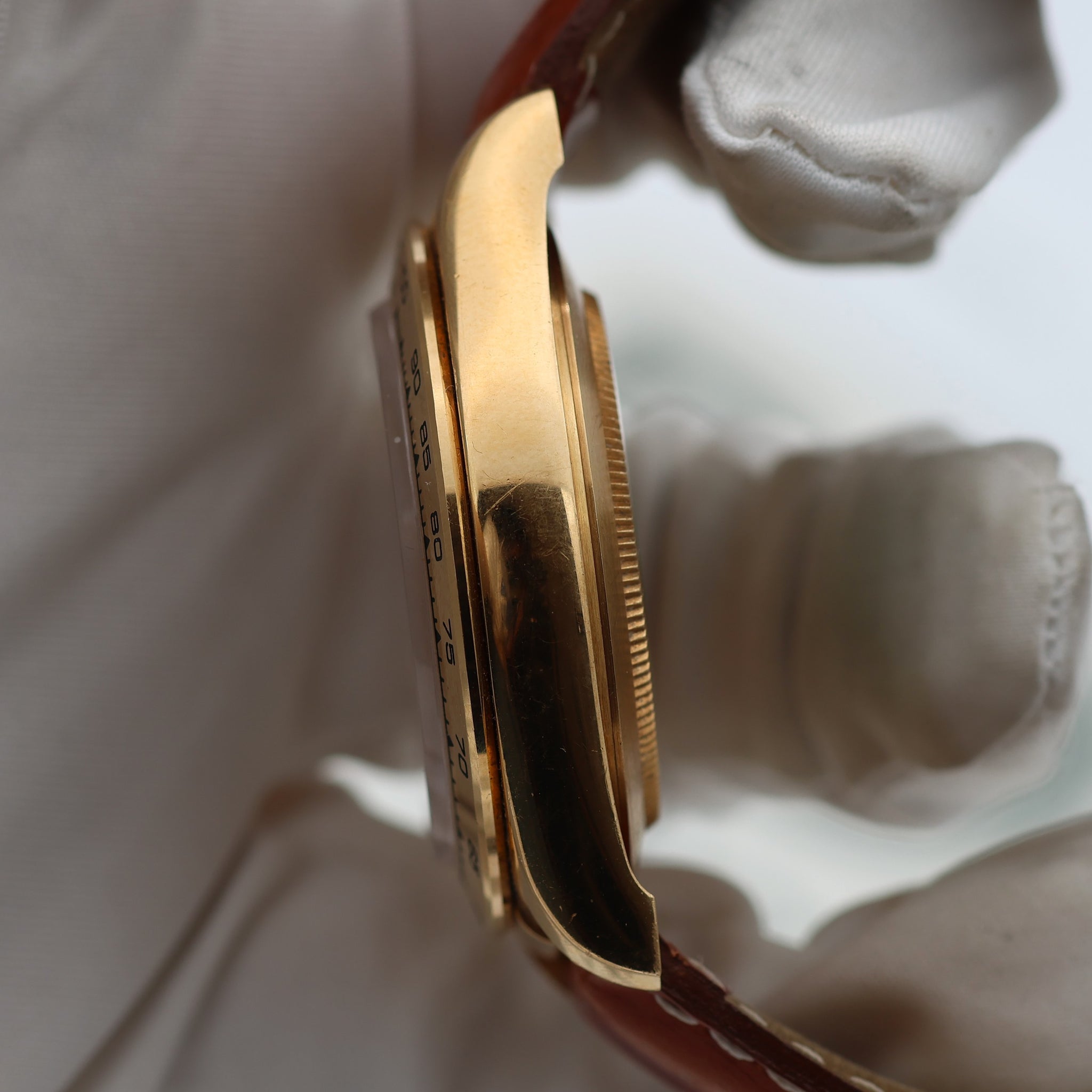 More than any other contemporary Rolex, it's a timeless piece. With its iconic case, it's a slim watch, with a leather strap and a yellow gold clasp.