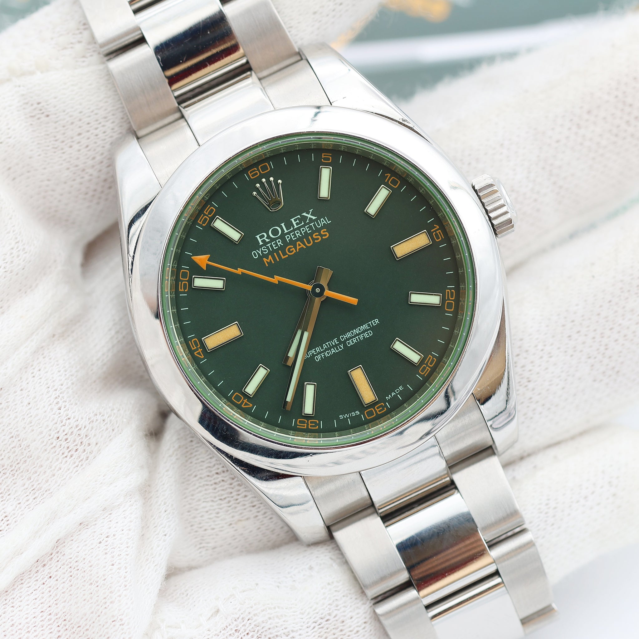 Rolex Milgauss 116400GV with Card - Black/Green Glass - Full Set