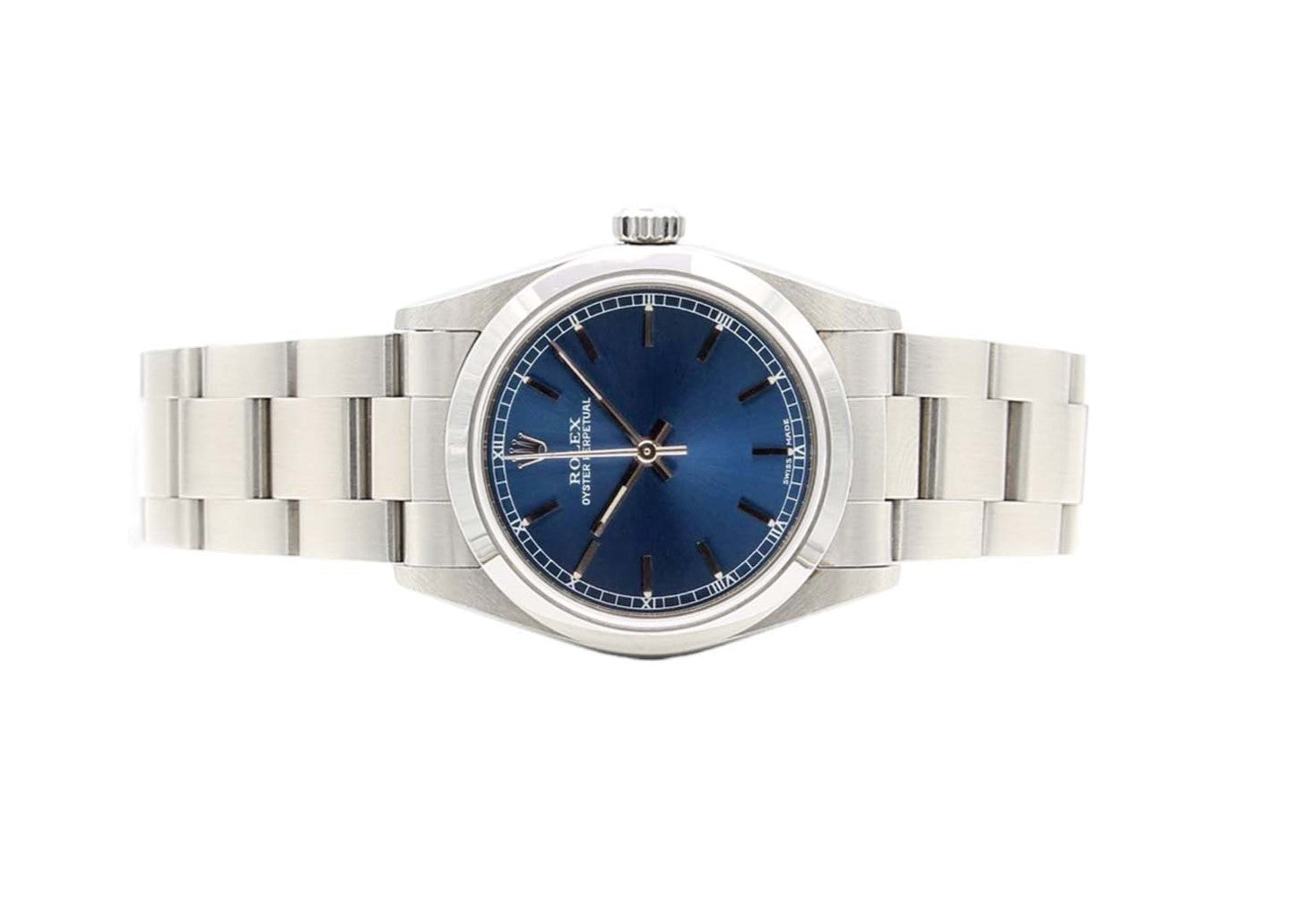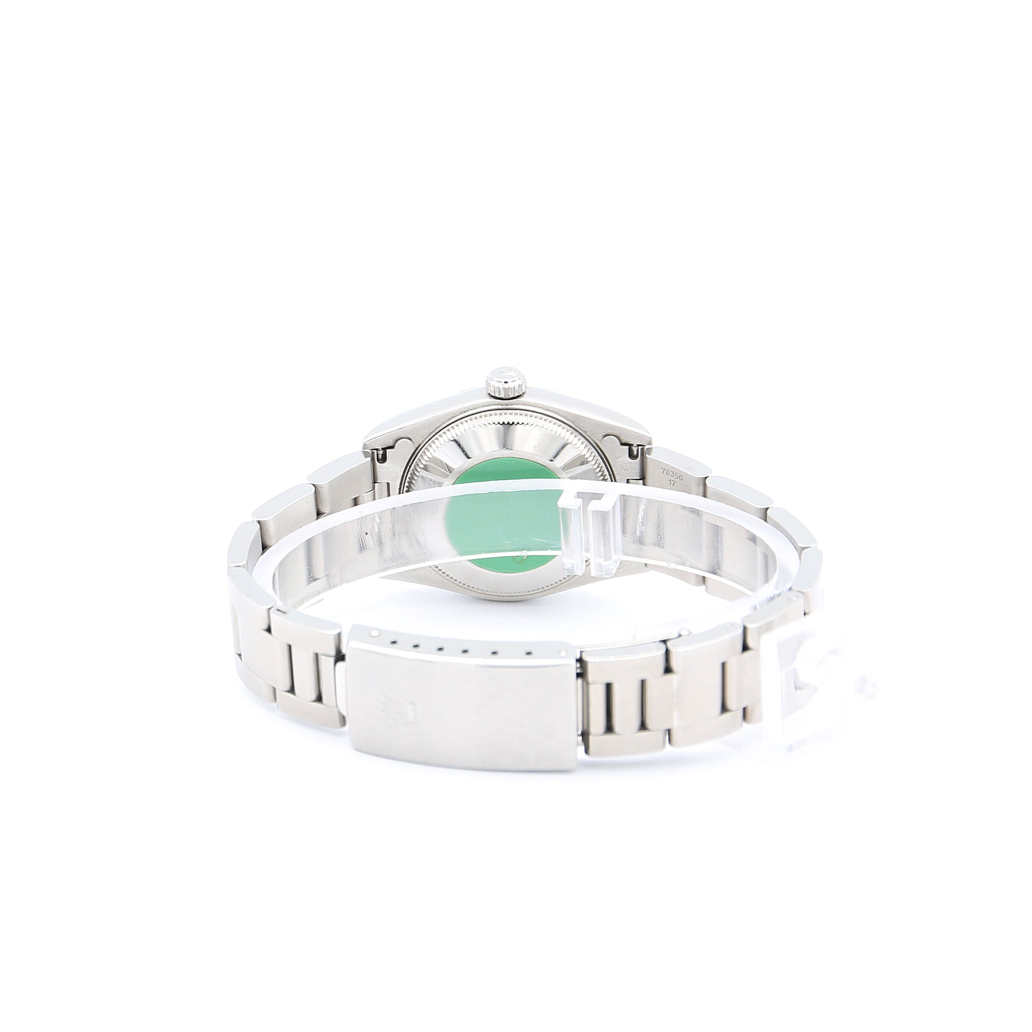Sized at the uncommon 31mm diameter, it is just above the traditional women's Oyster Perpetual sizing of 26 (later 28mm), and just below the famed 36mm sizing of the classic model.