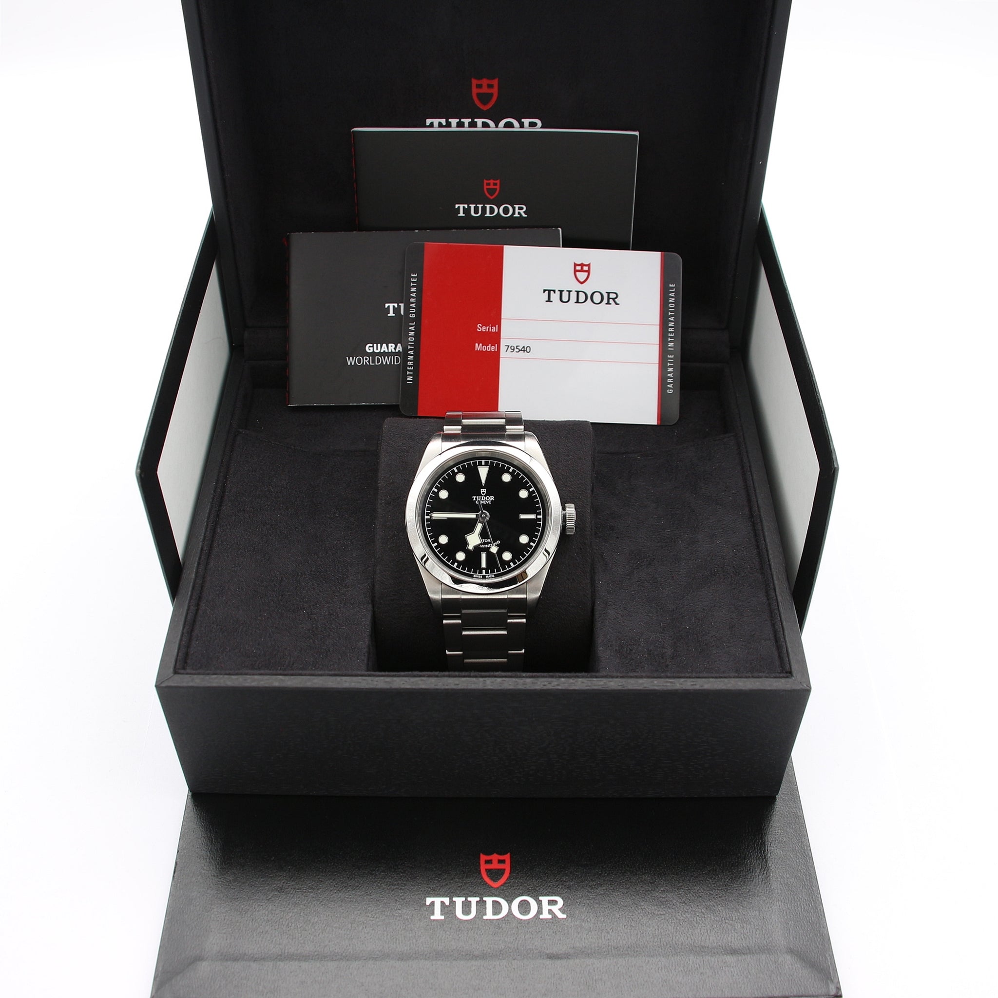 For sale at Debonar Watches: pre-owned Tudor Black Bay 79540, full set, with original documents and box, from 2019.