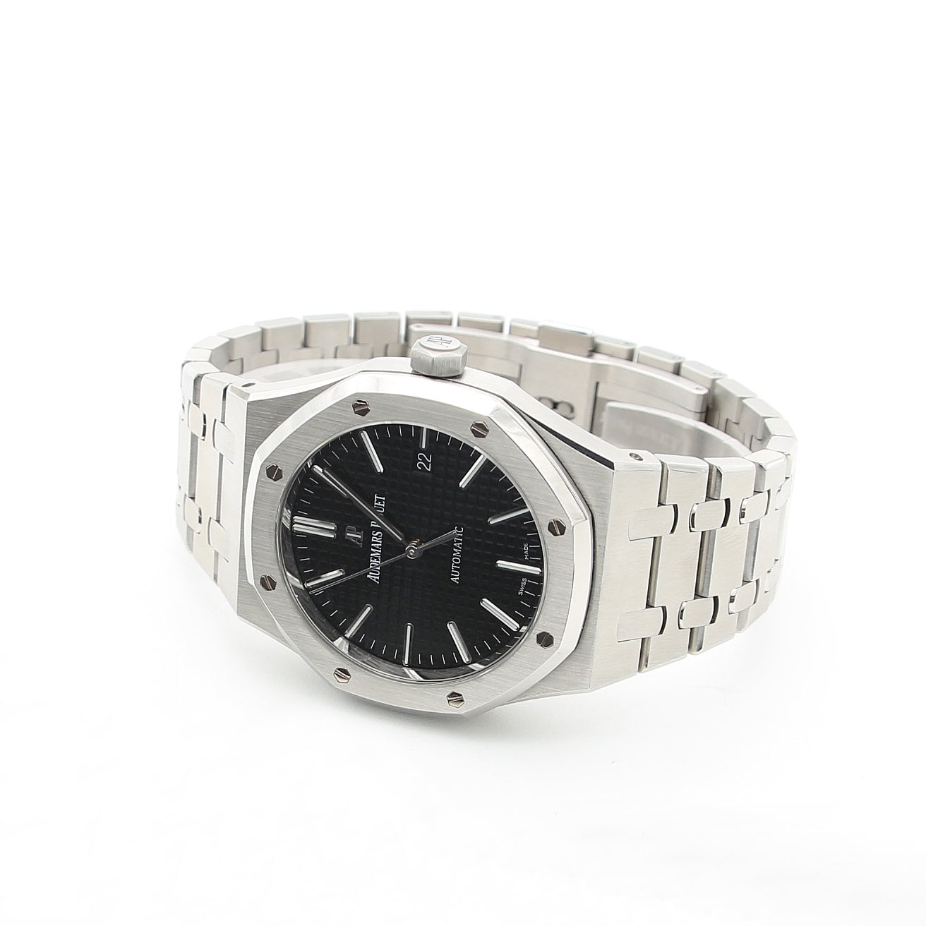 One of the most recognisable design traits of the AP Royal Oak is its bracelet, which is fully integrated into the case. A pair of vertical chains also run throughout the horizontal links, creating a distinct and aesthetically pleasing result.