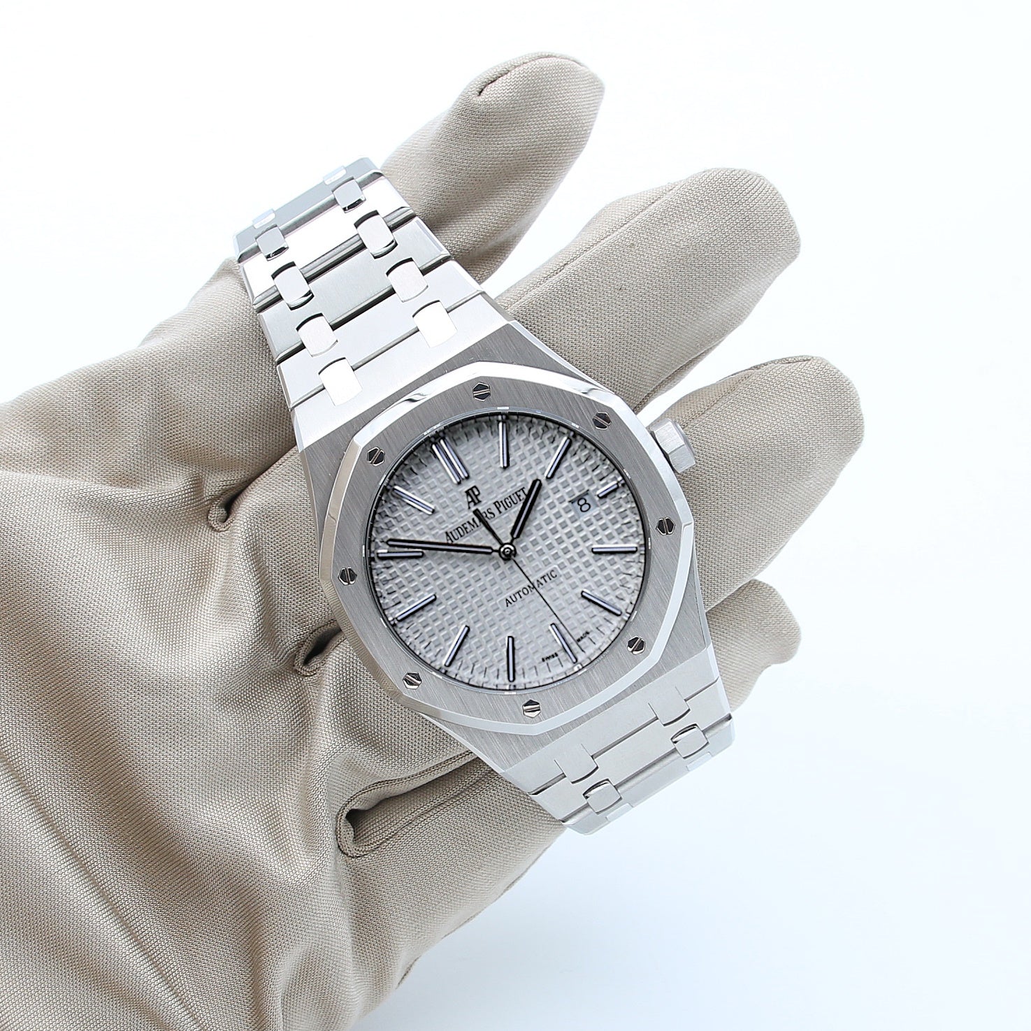 For sale at Debonar Watches: pre-owned Audemars Piguet Royal Oak ref. 15400ST, full set, with silver dial.