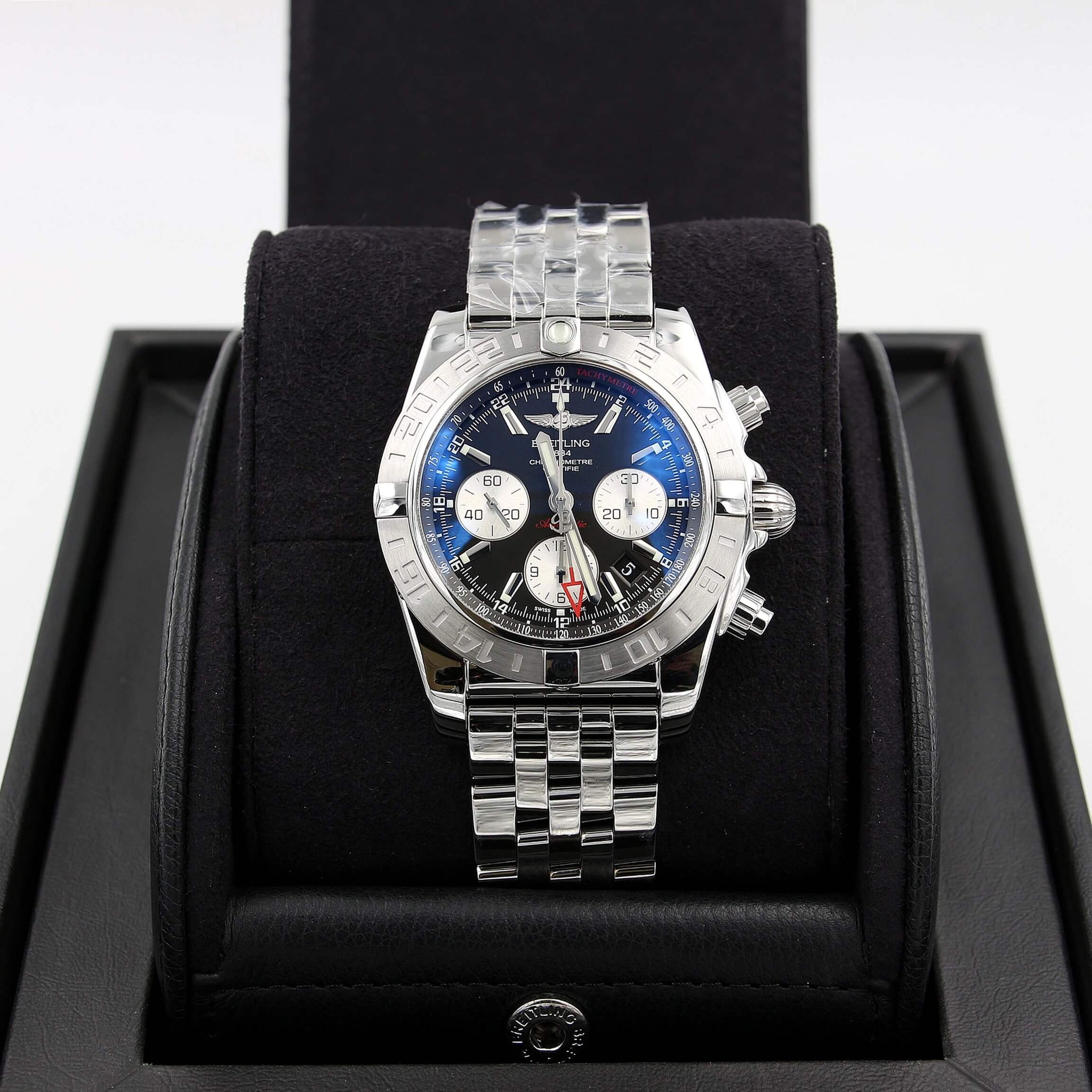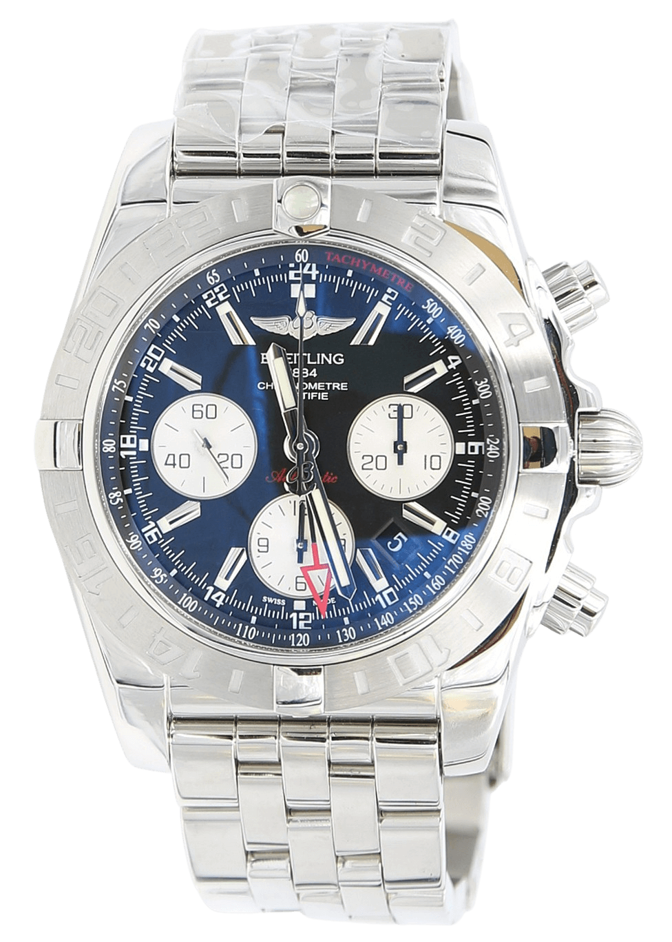 For sale at Debonar Watches: pre-owned Breitling Chronomat 44 GMT Chronograph ref. AB042011/BB56, full set with original box and documents.