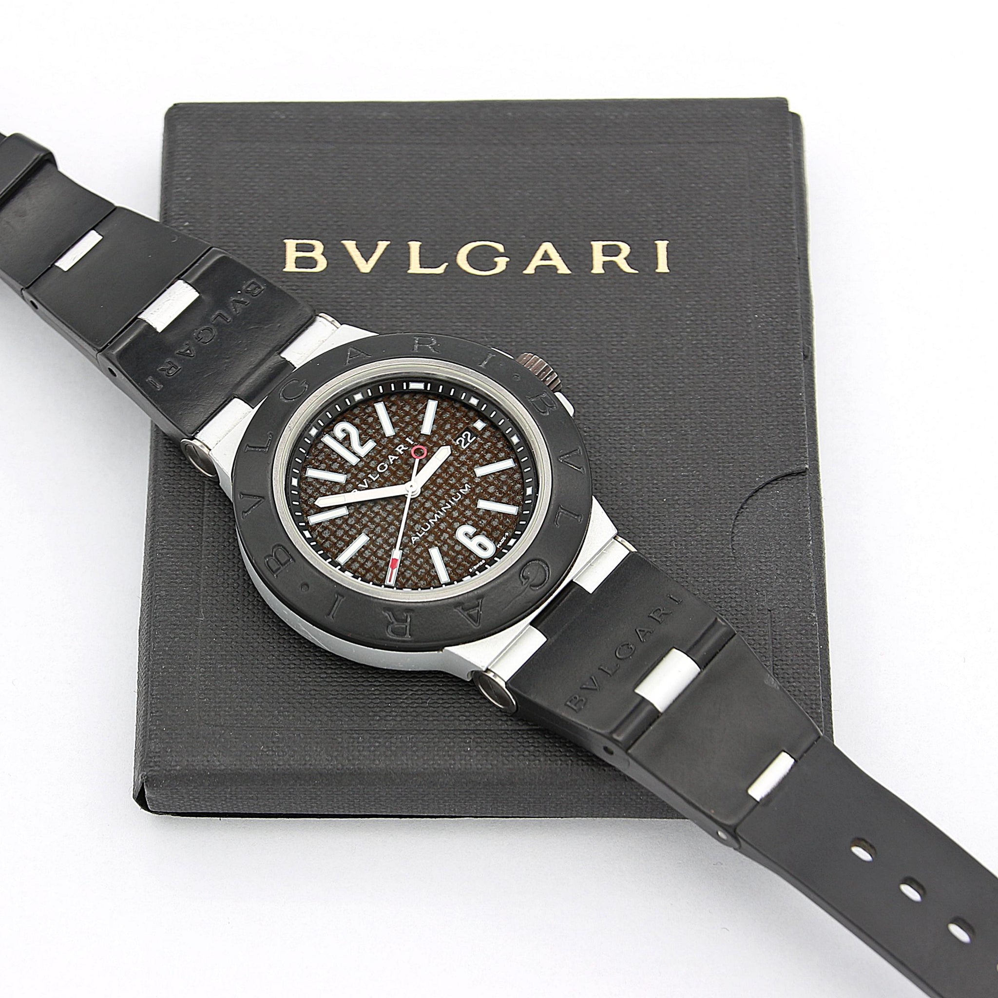 For sale at Debonar Watches: pre-owned Bulgari Aluminium Diagono ref. AL 44 TA, with original card and black dial.