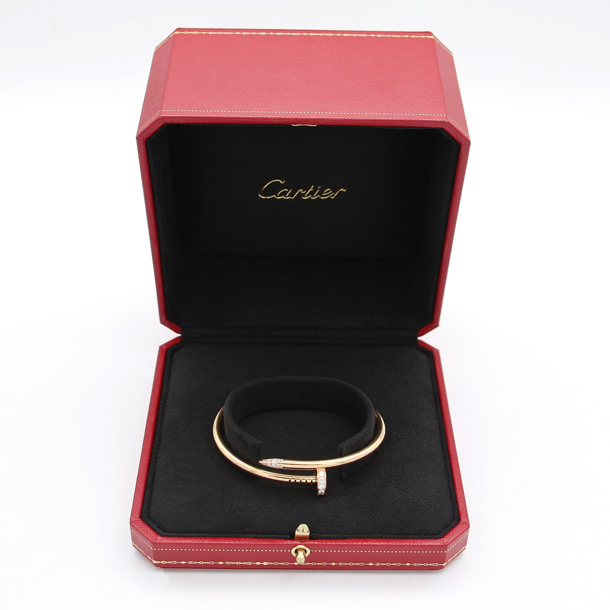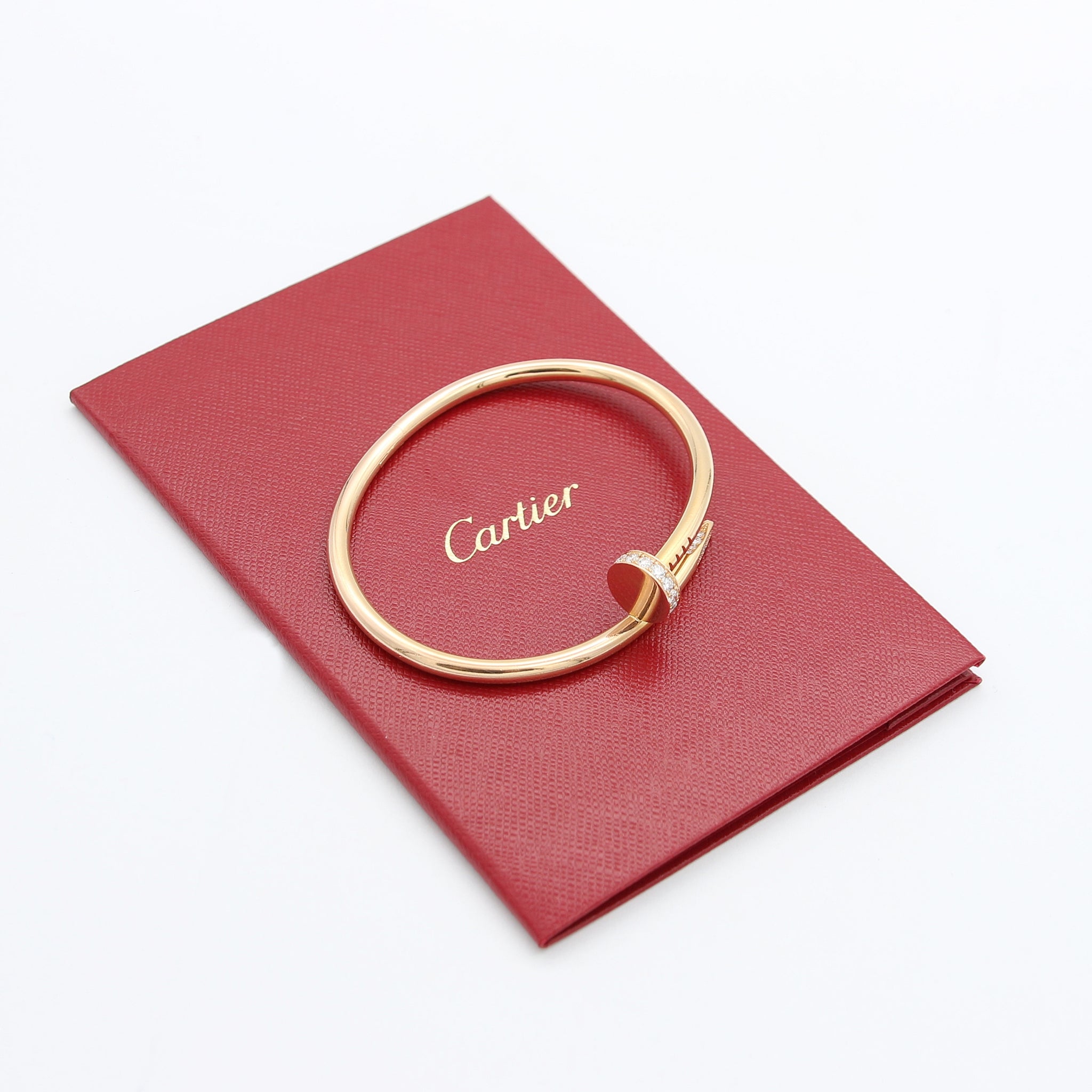 For sale at Debonar Watches: pre-owned Cartier bracelet Juste un Clou with diamonds, full set, with papers and box.