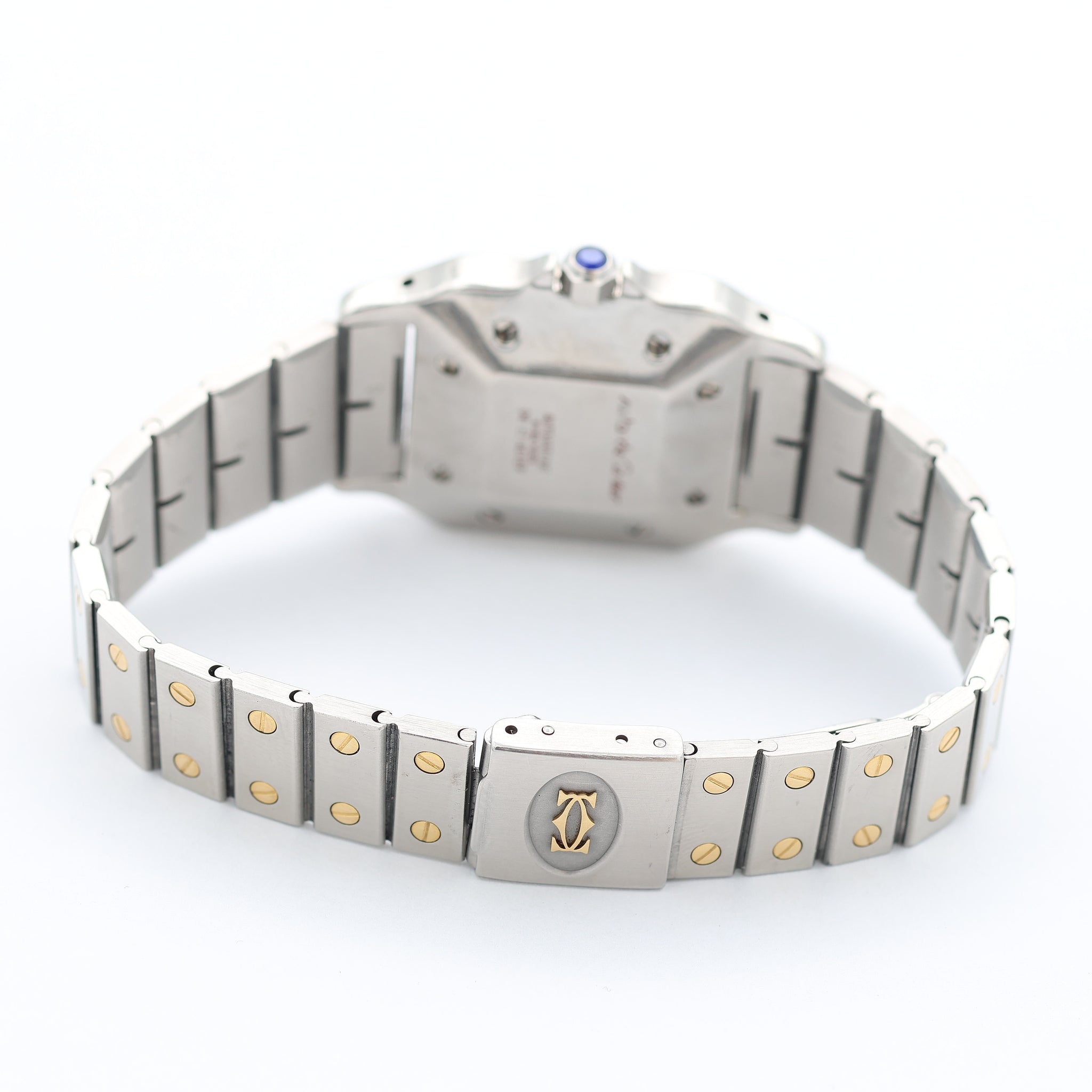 A nice, sophisticated watch to wear in any occasion thanks to its elegant size of 29 x 41 mm: a perfect midsize for men as well as women. The case and the distinctive ‘screwed’ bezel are executed in 18k yellow gold. Curated in all the details, we have the iconic engraved interlocking “C” Cartier logo on the clasp.