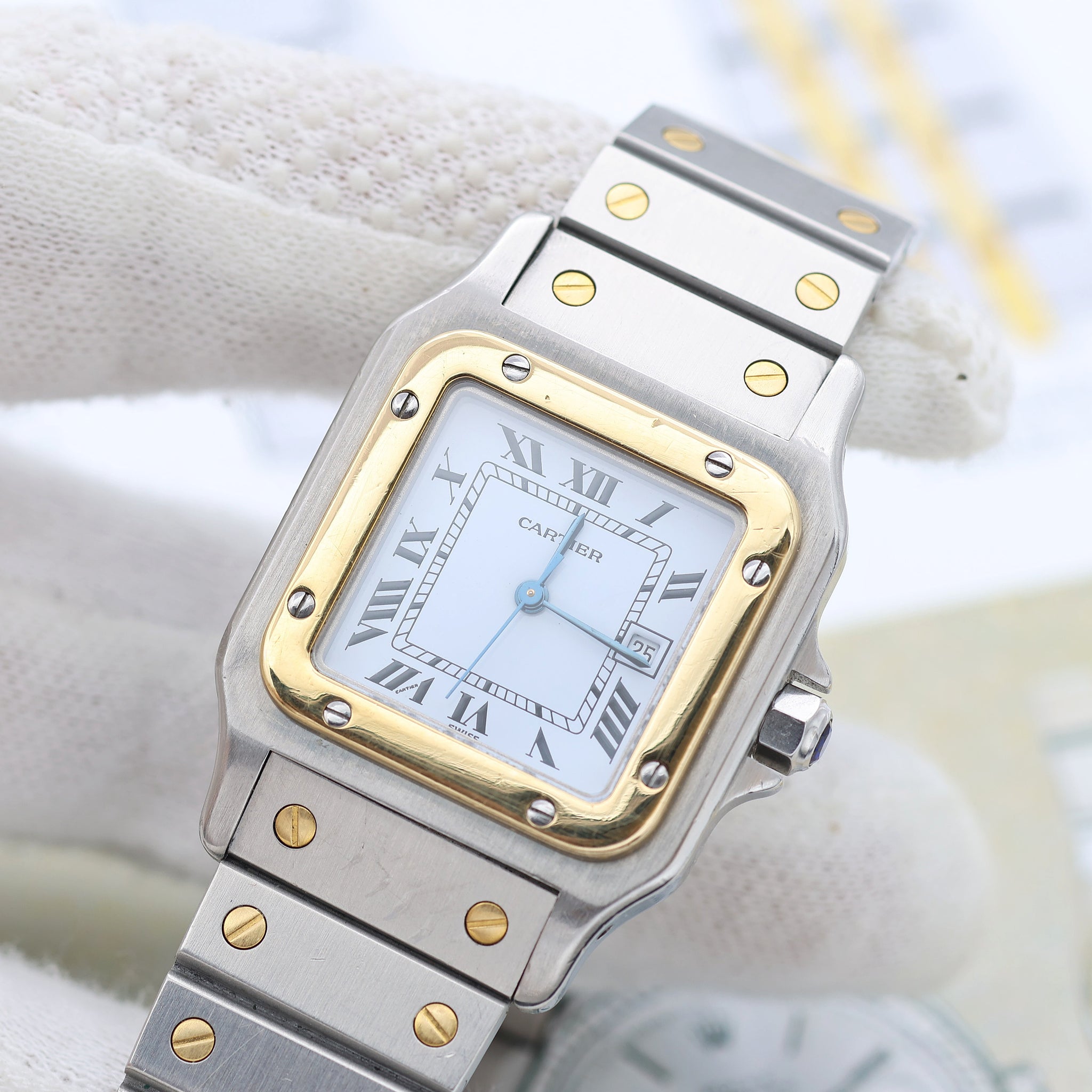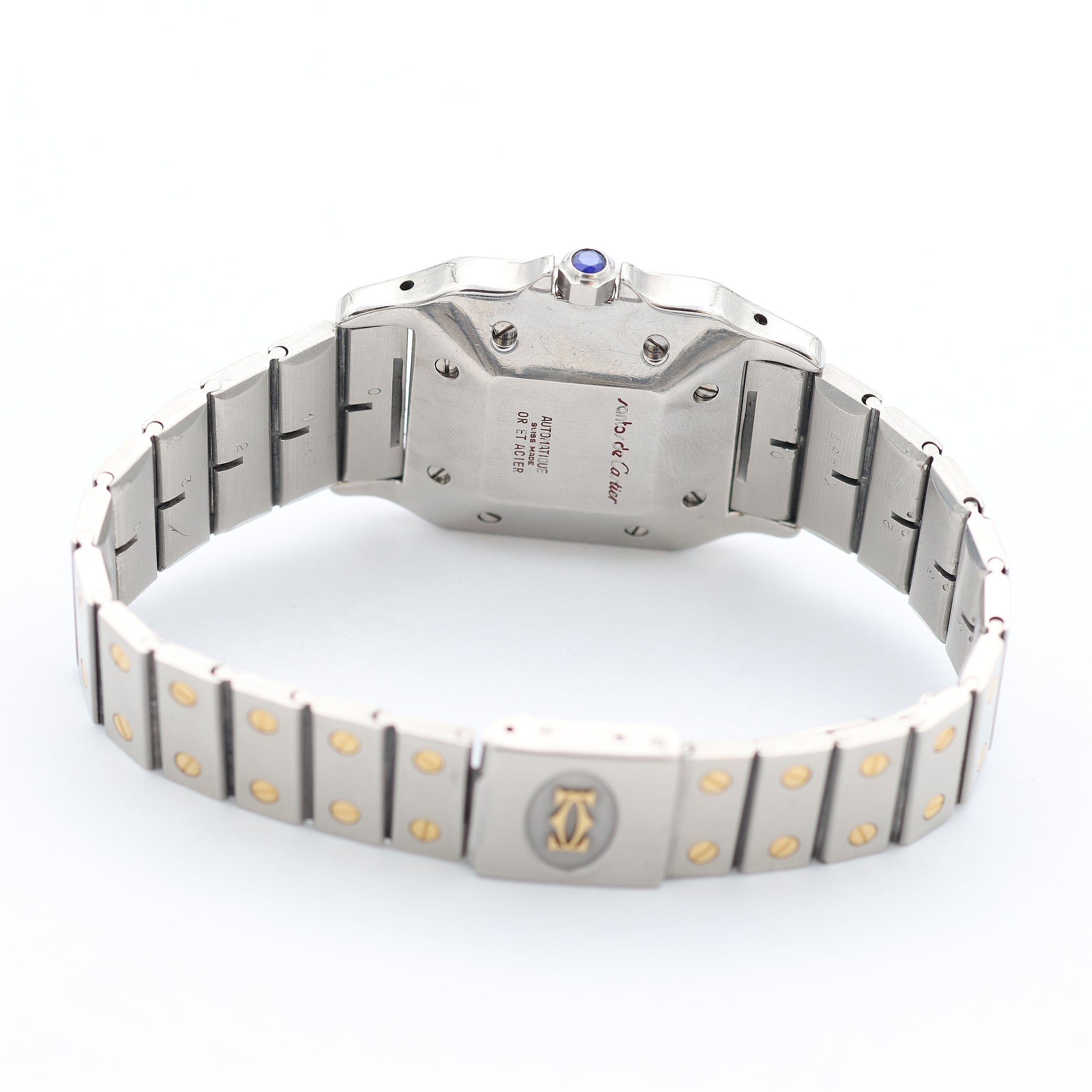 For sale at Debonar Watches: a pre-owned vintage Cartier "Santos Carree" wristwatch ref. 2961 from the '80s, mechanical with automatic winding, in gold and steel.