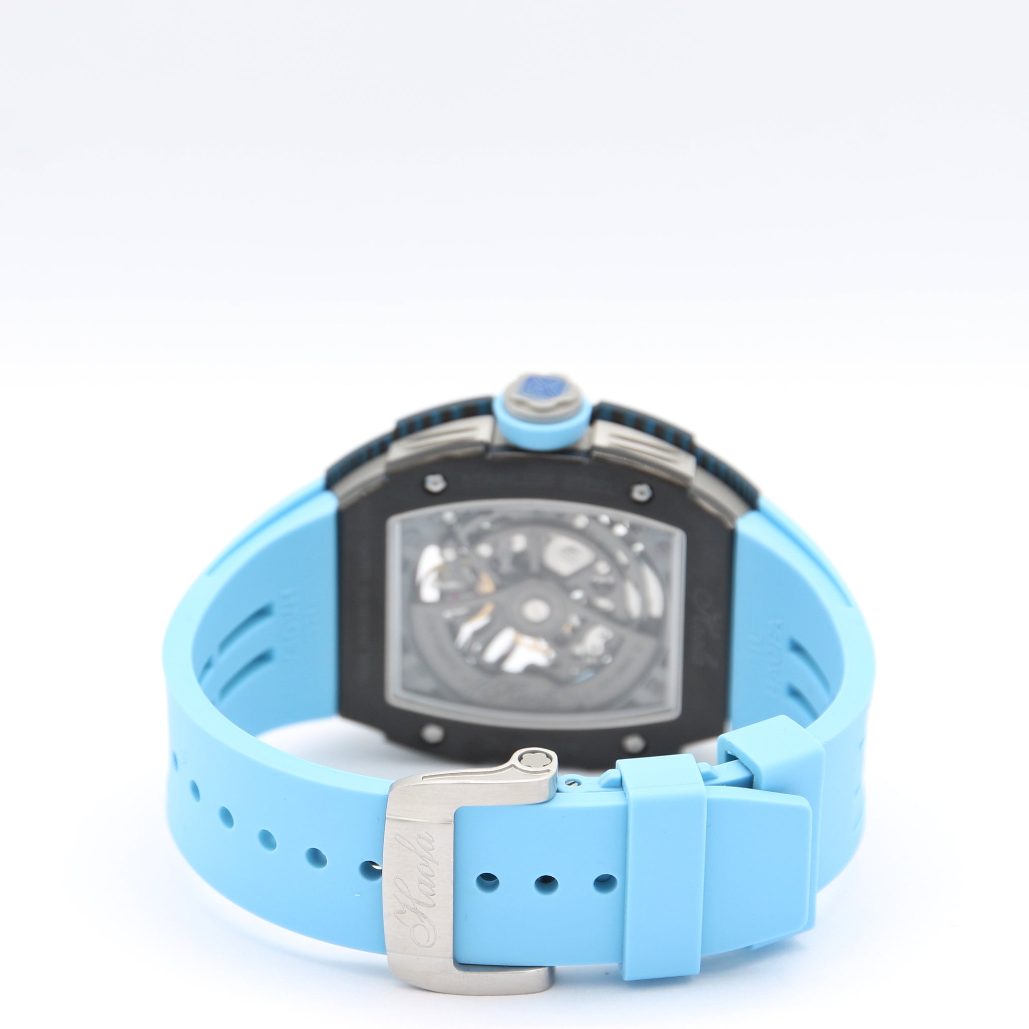 The case is made of 316L stainless steel has good corrosion resistance, toughness, and corrosion resistance. The carbon fiber used in the watch bezel combines lightness and solidity.