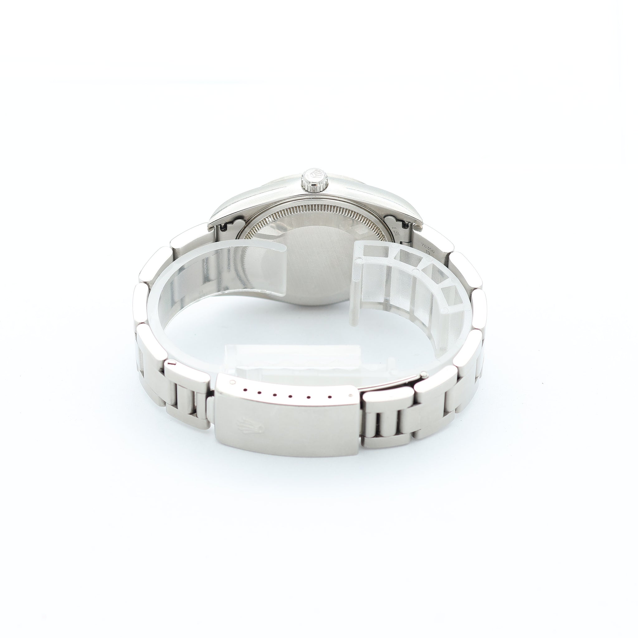 It can be considered a modern unisex Rolex reference with its 34mm Oyster case with a silver dial.