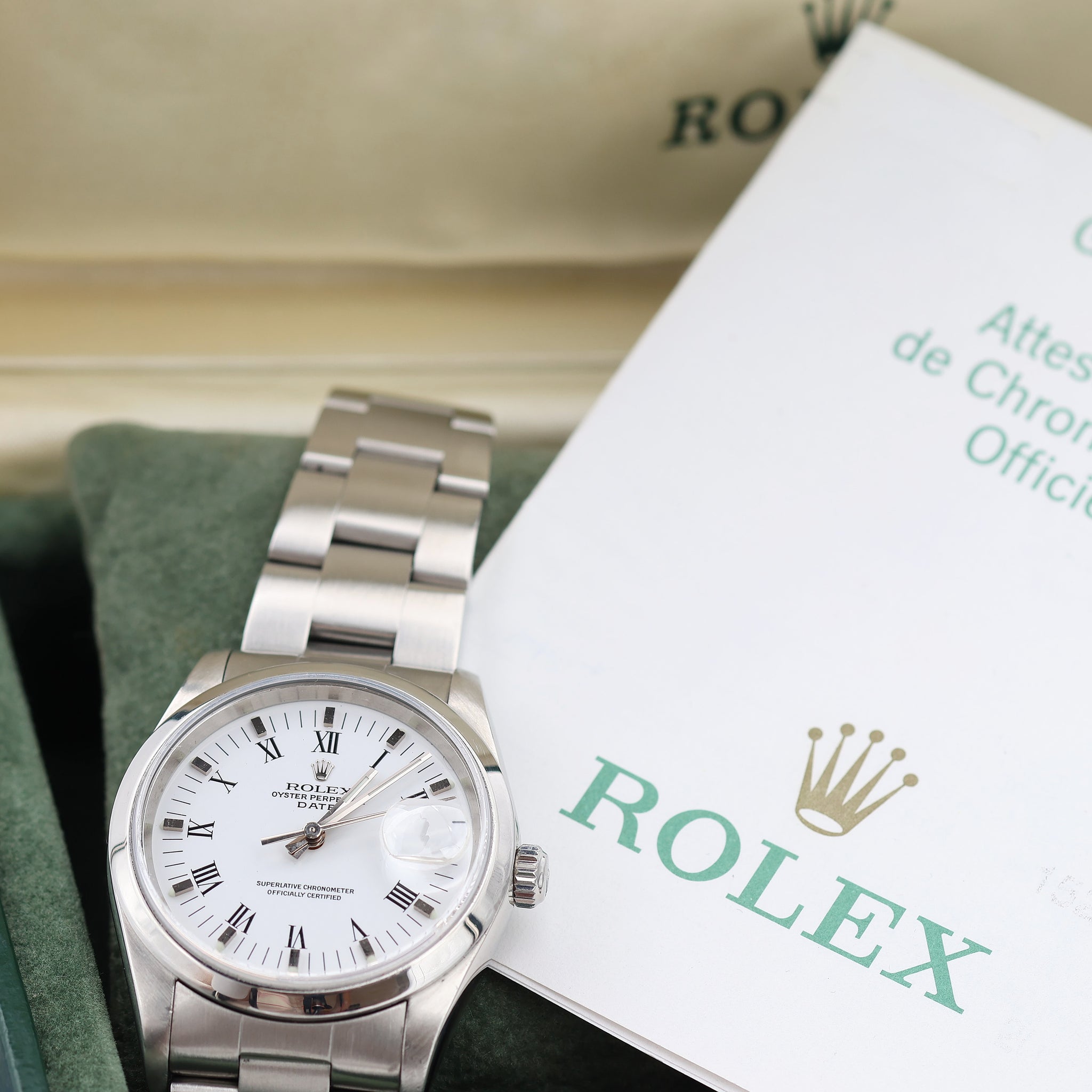 Rolex Date ref. 15200 White Roman Dial with Oyster Bracelet - Full Set