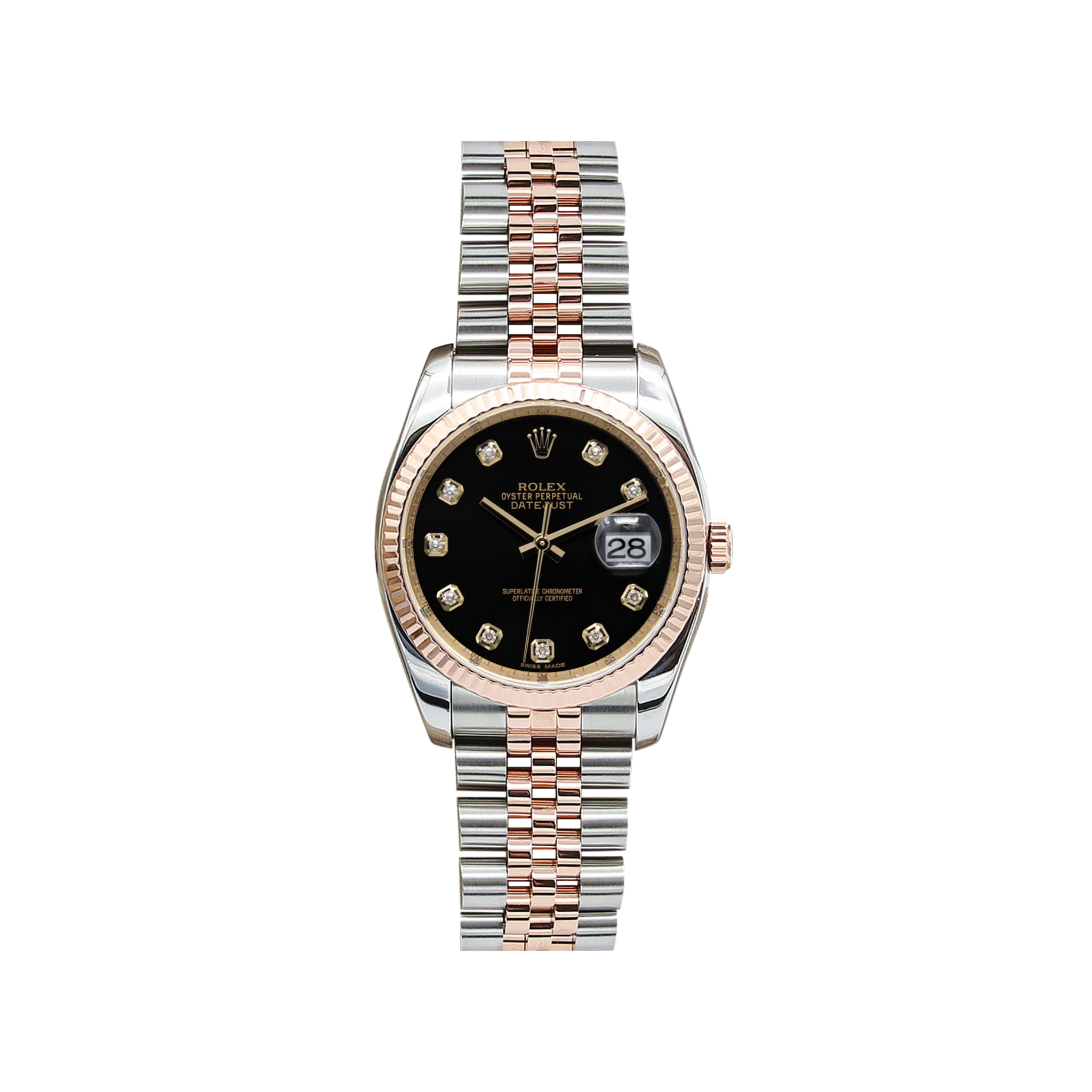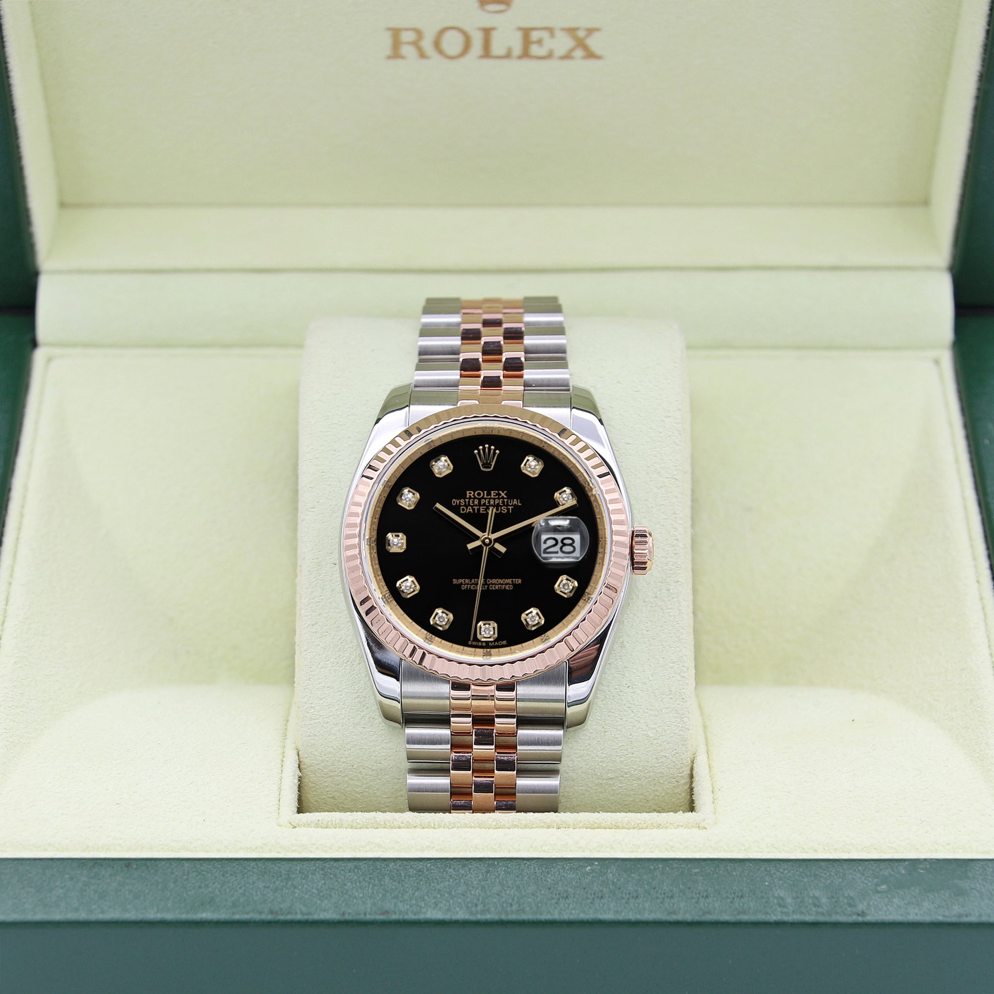 Rolex Datejust 36 ref. 116231 Black Diamonds Dial - Steel/Rose Gold Jubilee - Full Set
