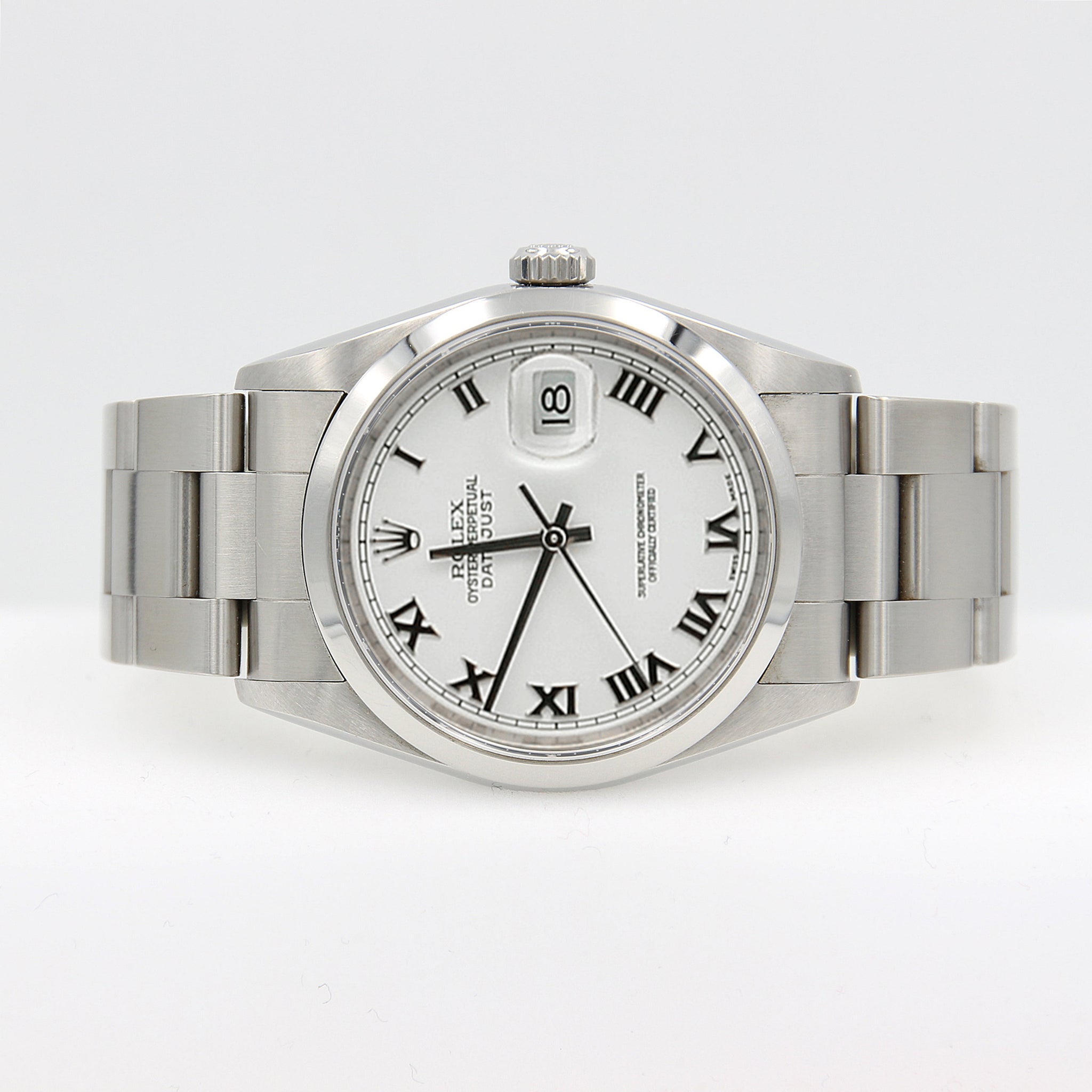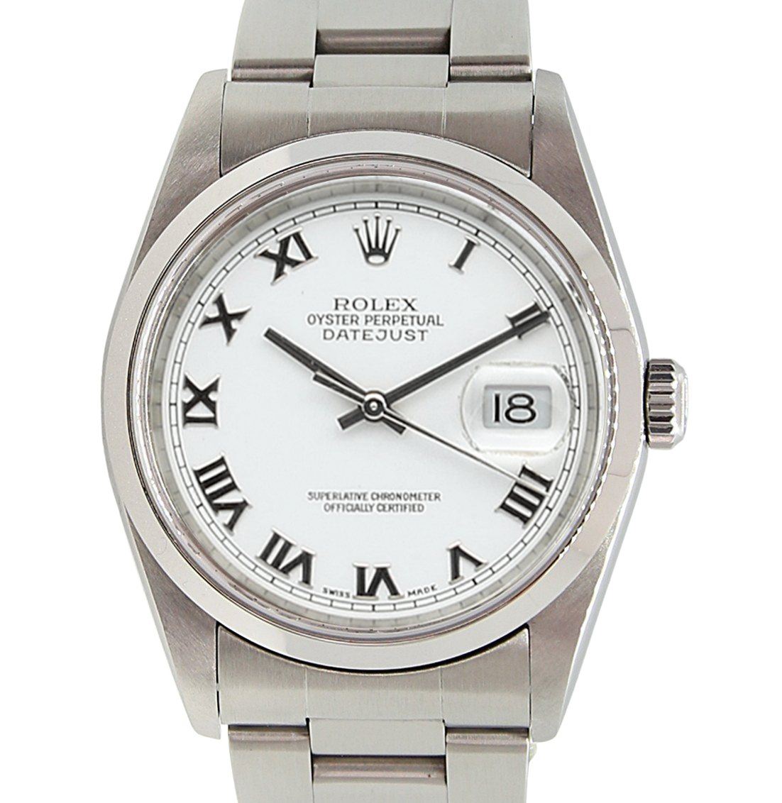Rolex Datejust 36 ref. 16200 - White Big Roman Dial Oyster Bracelet - Full Set