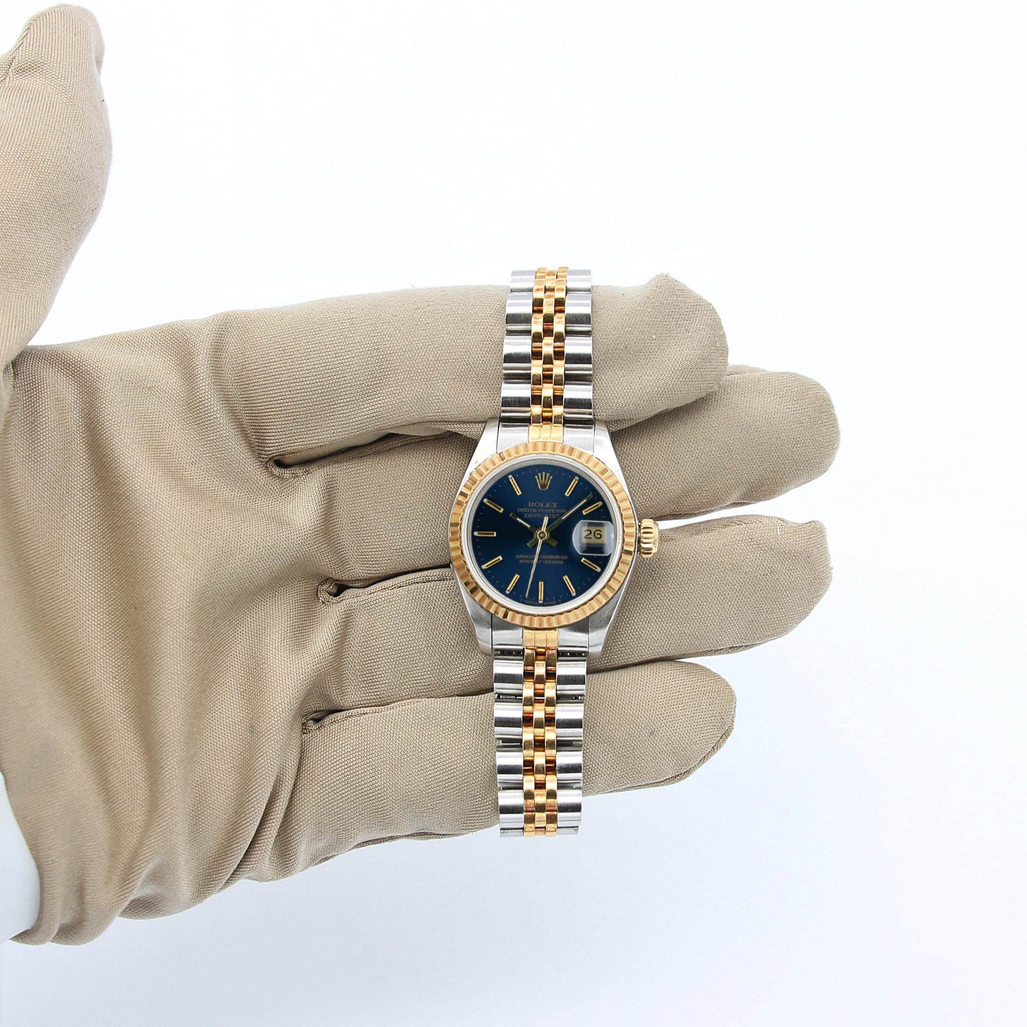 For sale at Debonar Watches: pre-owned Rolex Datejust Lady ref. 69173 from the end of the '90s, with an original Rolex blue soleil dial, full set.