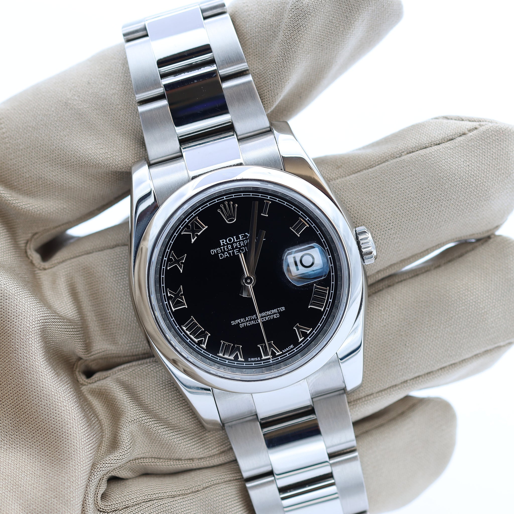 Rolex Datejust ref. 116200 Black Roman Dial - Oyster Bracelet - Full Set