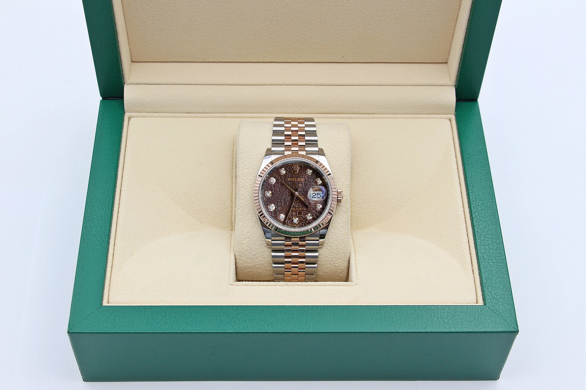 For sale at Debonar Watches: pre-owned Rolex Datejust ref. 126231, full set, with a warm chocolate dial.