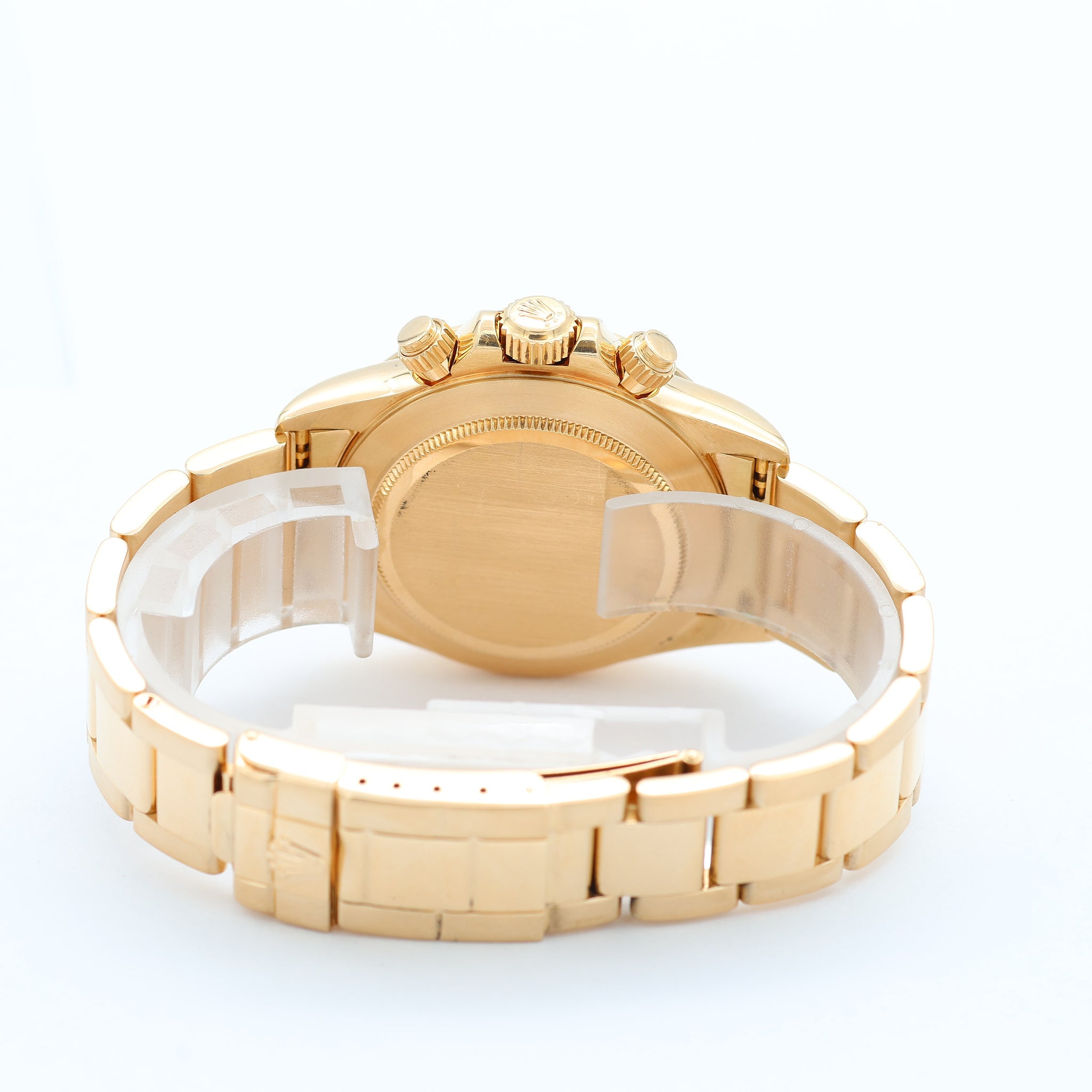 The Rolex Cosmograph Daytona ref. 16528 is a statement of luxury, performance, and timeless design. Crafted from solid 18k yellow gold, this iconic chronograph blends Rolex’s racing heritage with unmatched elegance.