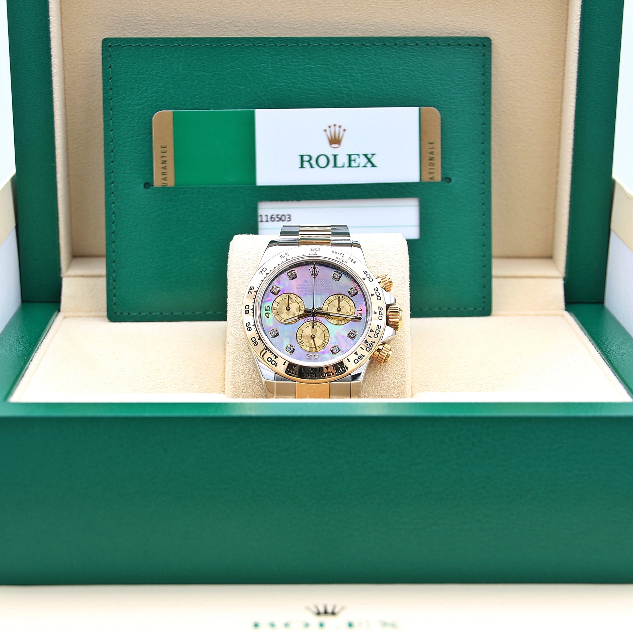 Amongst all of the different Daytona references that Rolex has released over the years, the 116503 is one of the most recent. Since its release in 2016, this two-tone Rolex chronograph has captured the hearts of many with its sleek design, high-quality materials, and exceptional functionality.