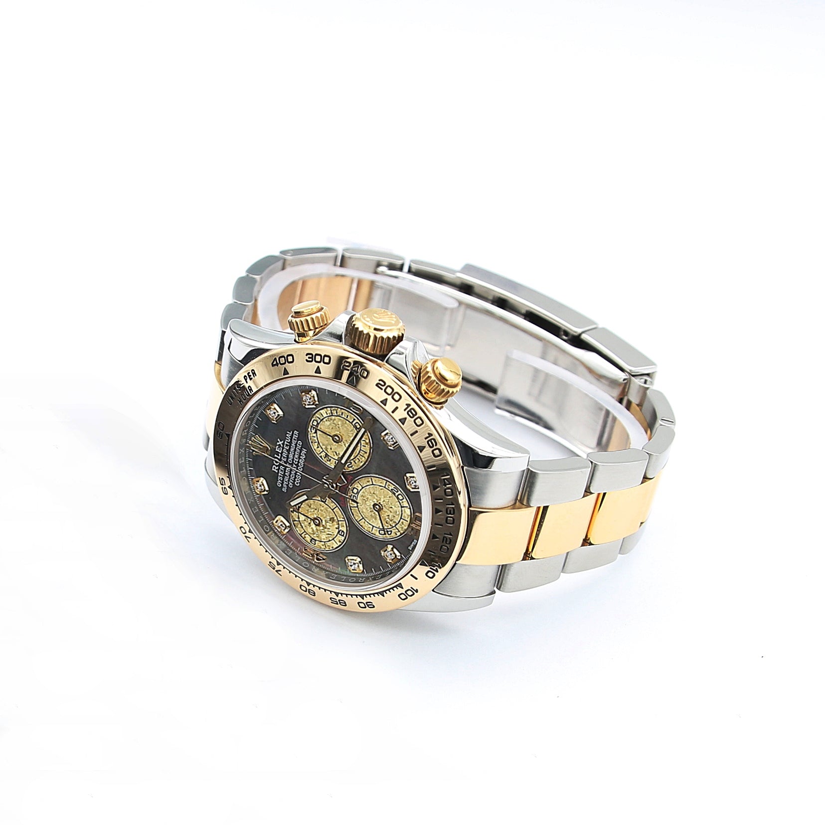 The Rolex Daytona 116503 is crafted from 904L stainless steel and 18k yellow gold. This blend of materials is also known as Rolesor. This combination of materials gives the watch an elegant yet sporty look that has become synonymous with the Daytona collection.