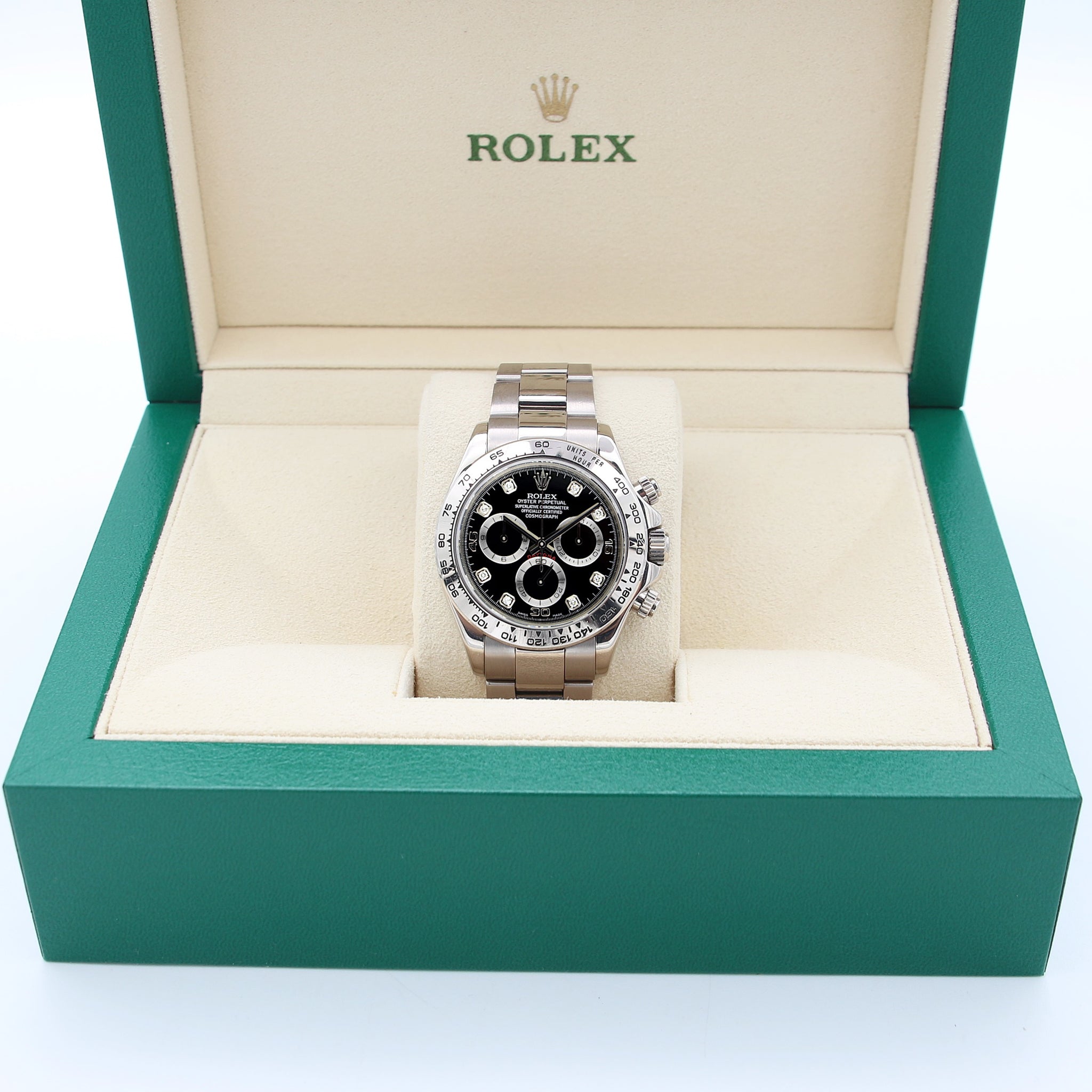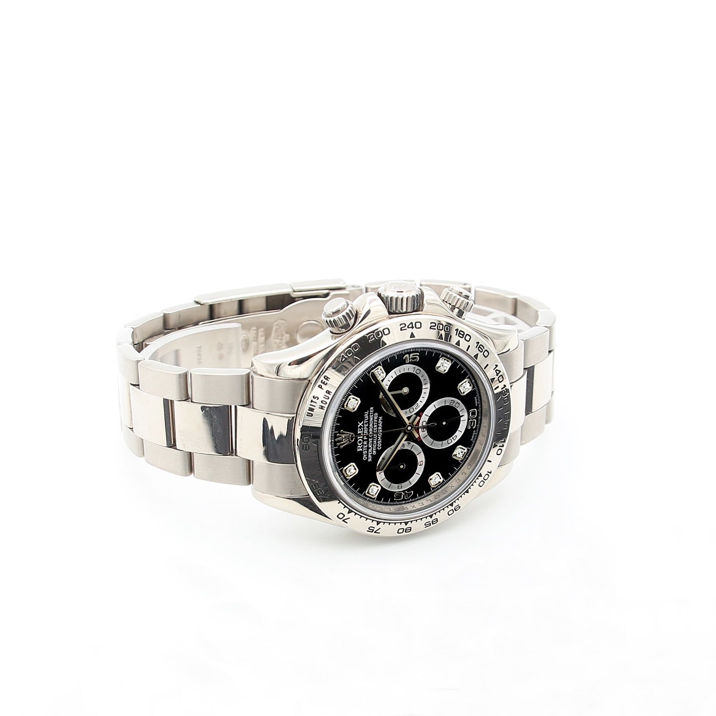 Shortly after the release of the first batch of Daytona watches with in-house movements, Rolex added the full white gold Daytona 116509 to the range in 2004, complete with a white gold Oyster bracelet.