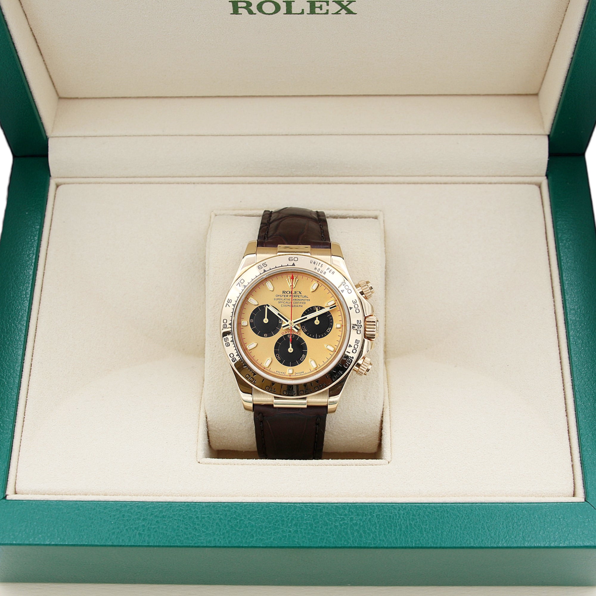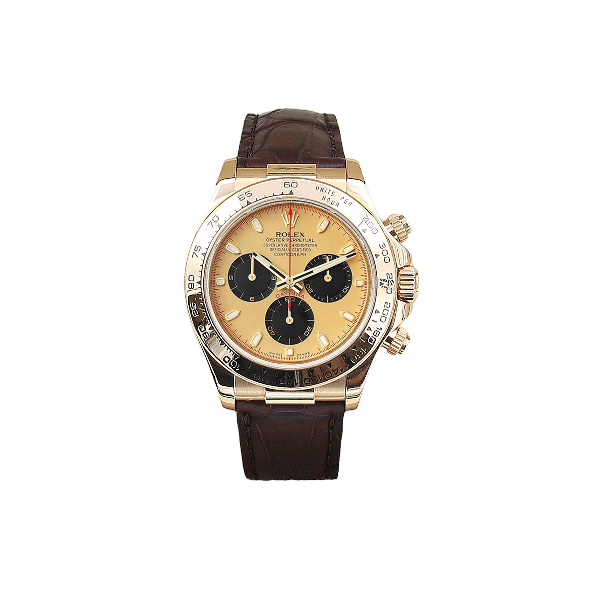 Rolex Daytona ref. 116518 - 18k Yellow Gold and Leather Strap - Champagne dial with black subdials