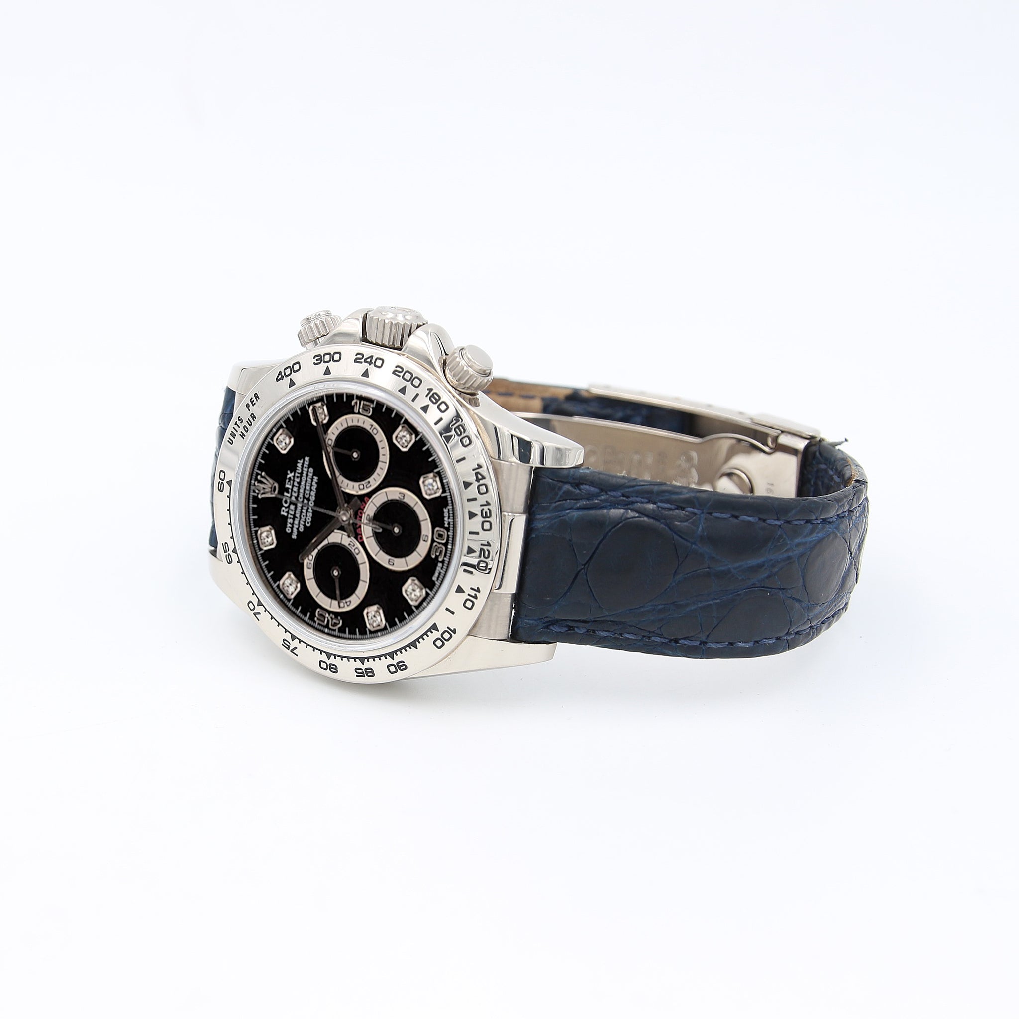 The Rolex Cosmograph ref. 16519 is a particular white gold variant of the Daytona chronograph introduced in 1997 and only available with a leather strap and folding clasp.