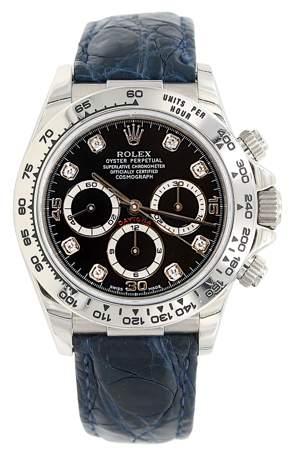 This Daytona is in white gold with a sportive black dial with diamonds, to add that touch of peculiarity that only few watches can give.