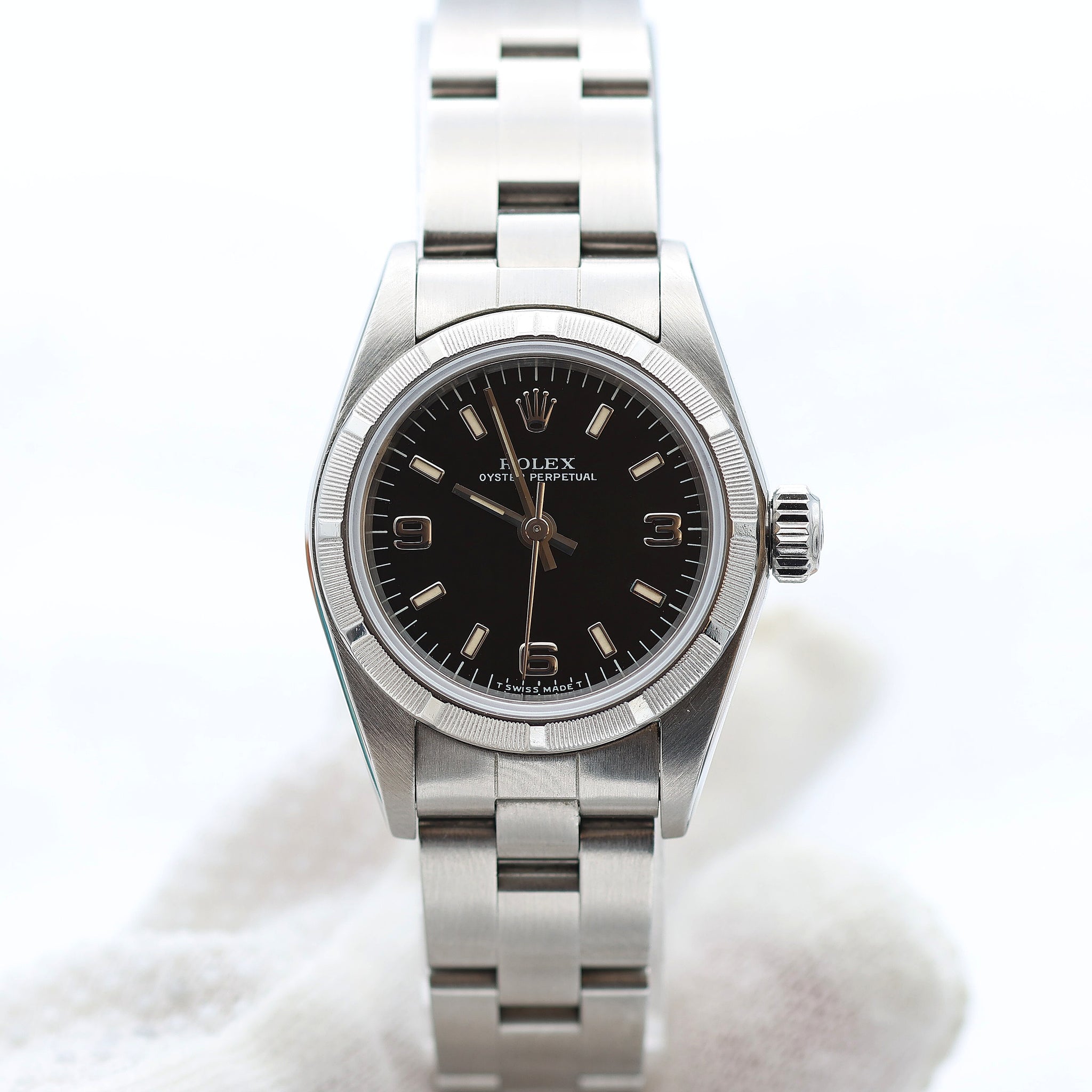 This Rolex Oyster Perpetual ladies watch is a perennial design classic with the solid construction and mechanical reliability to match its timeless look.