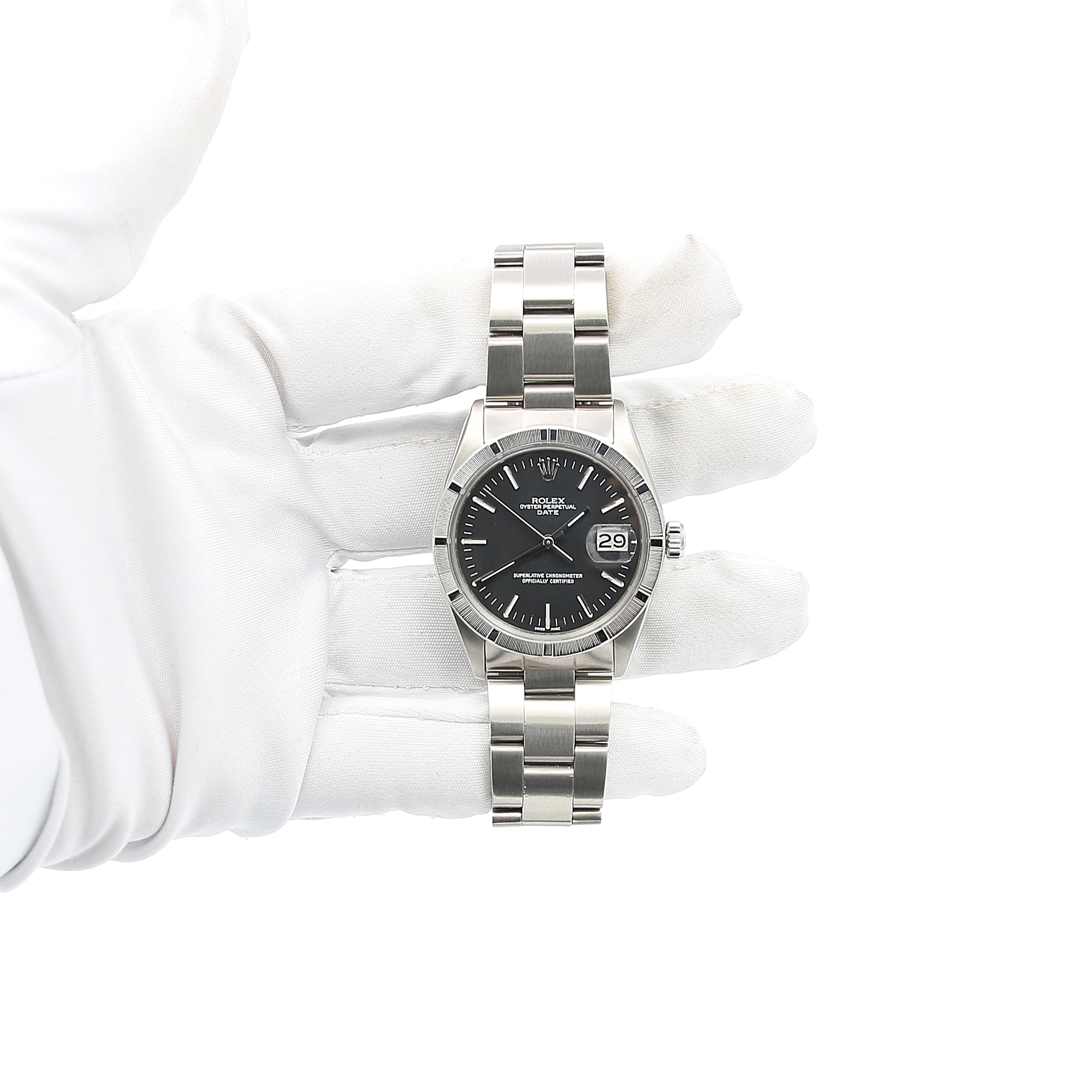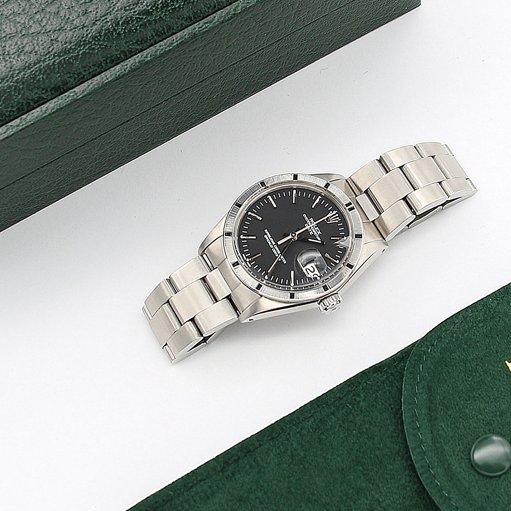 While the classic size of the men’s Rolex Datejust is 36mm, the case size of Rolex Date measures 34mm, similar to the Air-King and Oyster Perpetual models that Rolex was producing at that time.