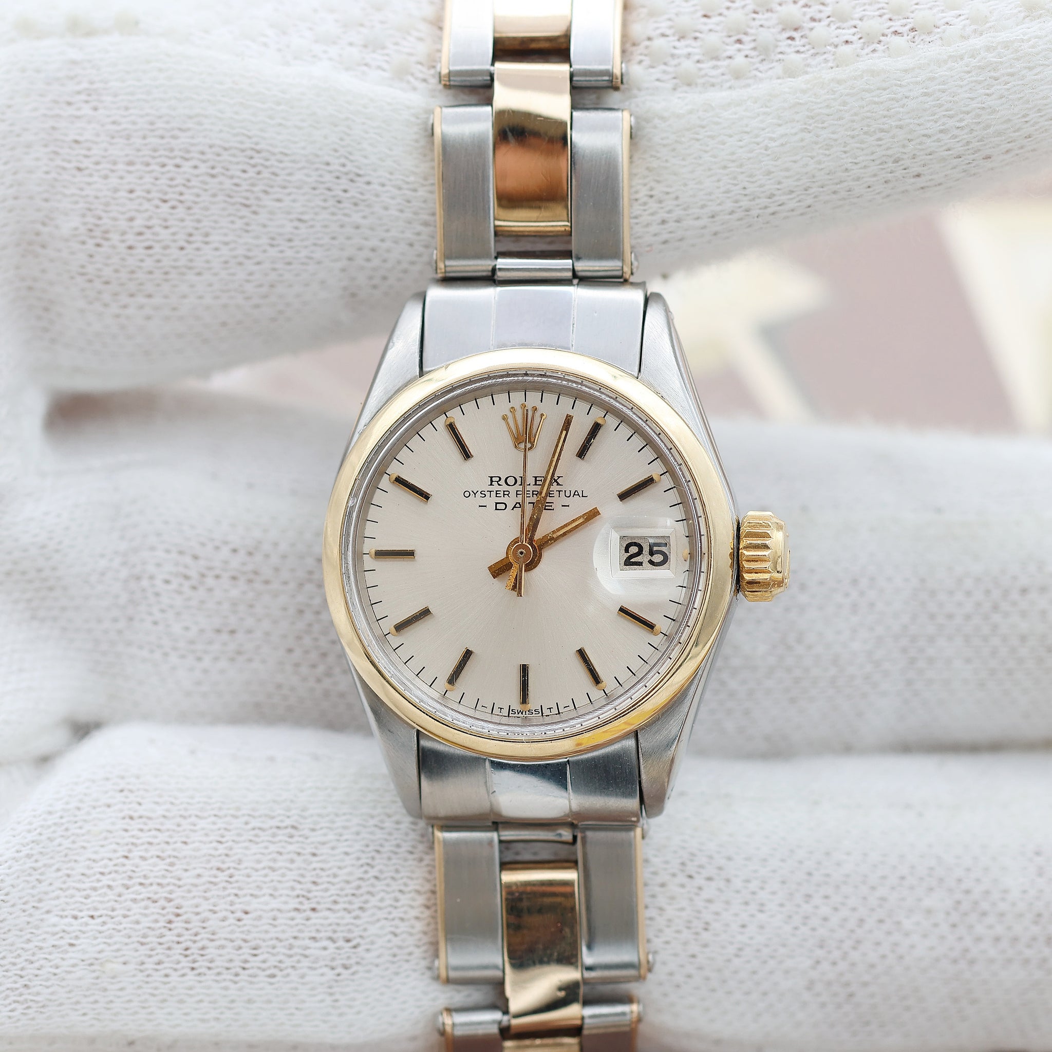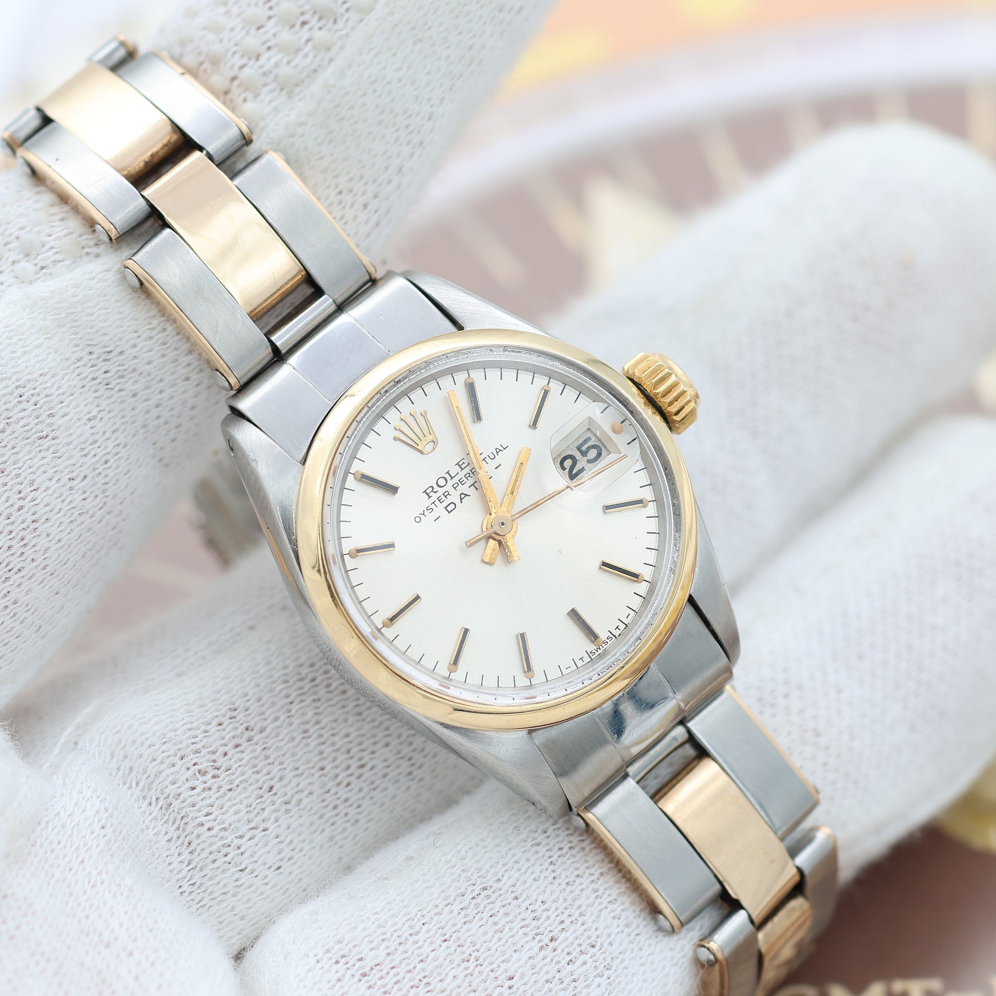 For sale: pre-owned Rolex Datejust Lady ref. 6516, in steel and yellow gold on an oyster rivet bracelet, automatic, from the '70s, with a bright silver dial.